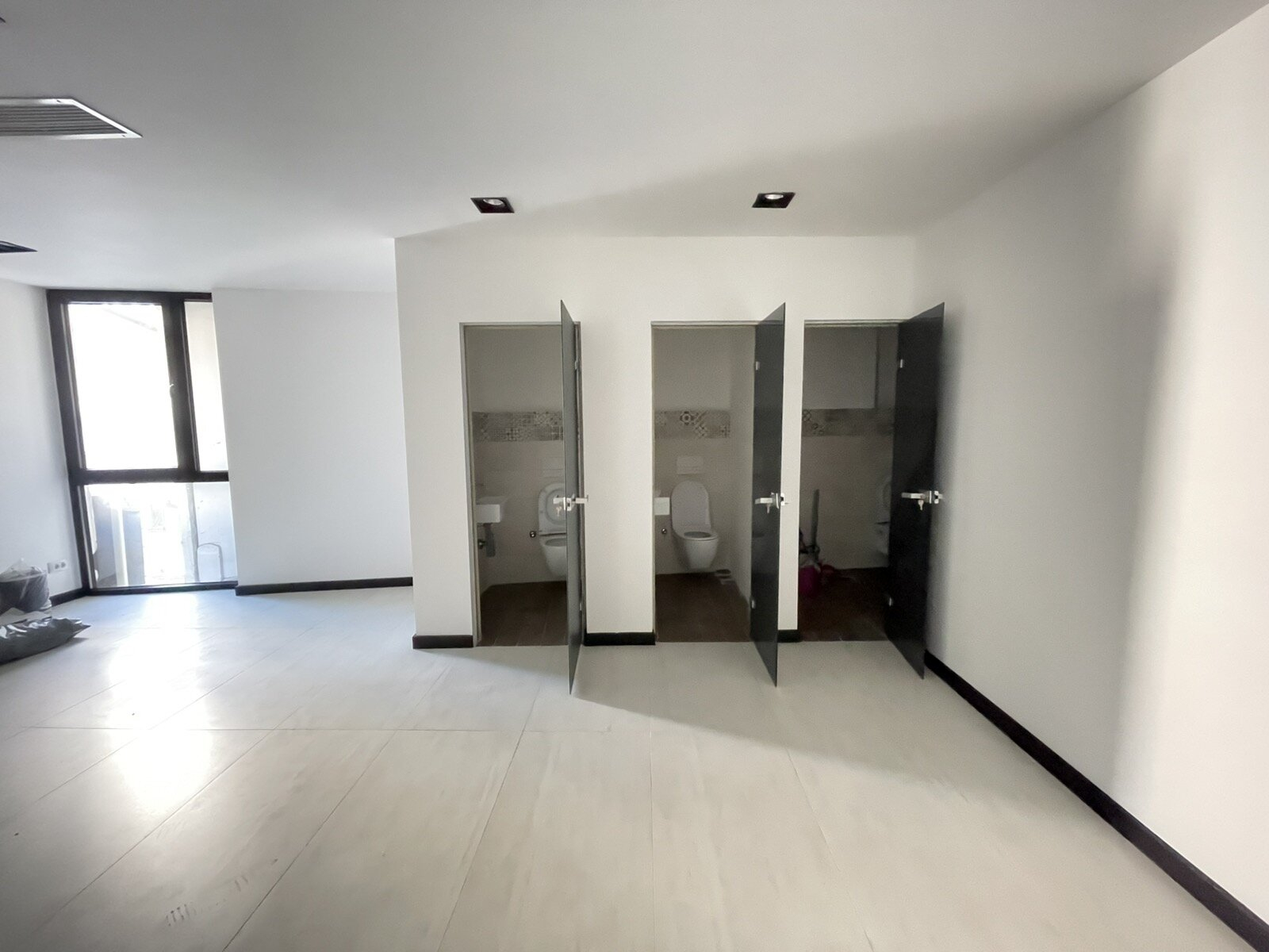The office space has one spacious open office, three separate offices, one meeting room, kitchen and toilets.