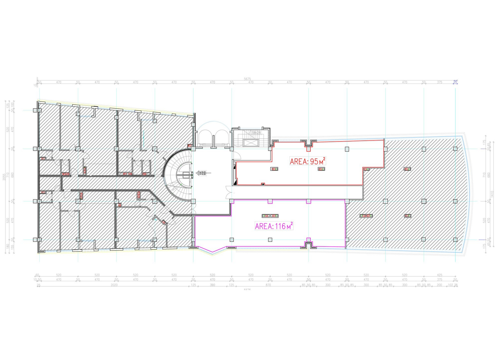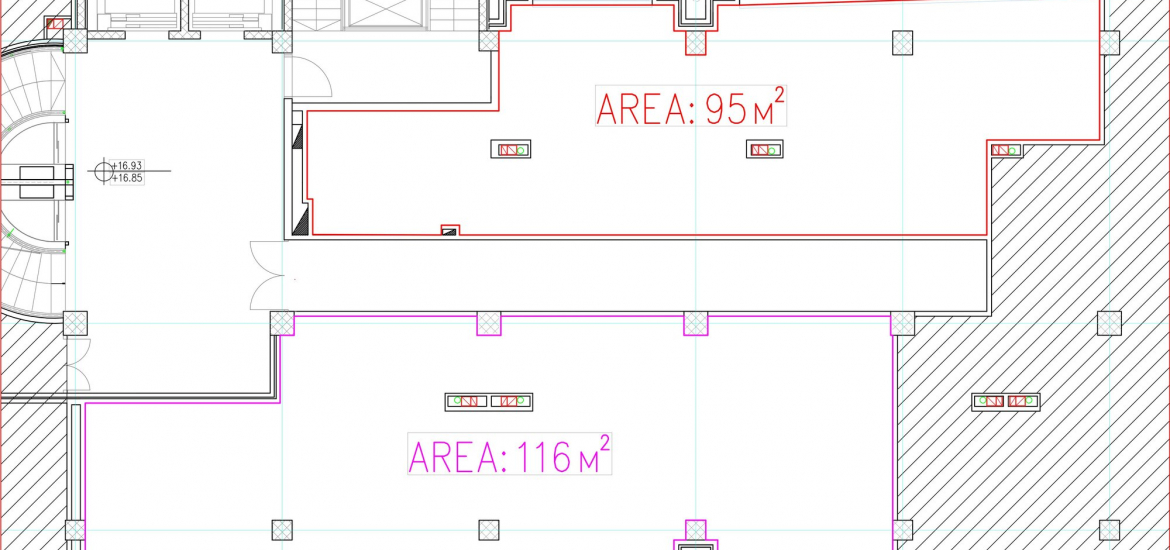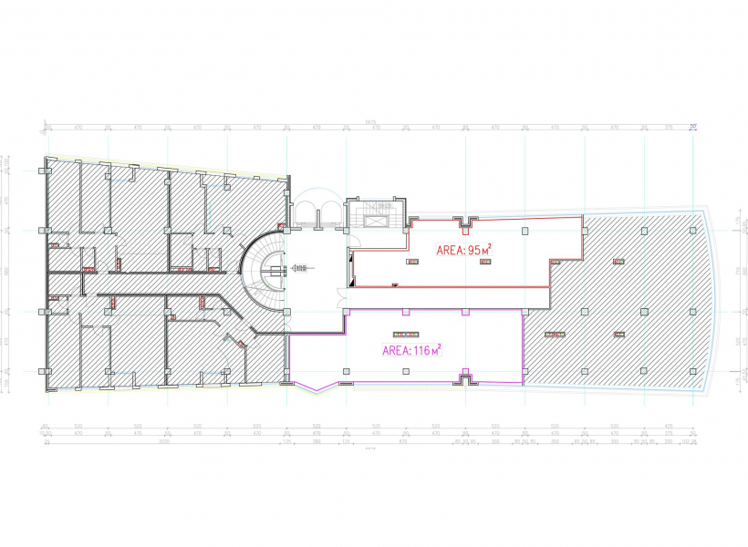 Business premises for rent in a business building in Karpos with areas of 95m2 and 116m2, located on the fifth floor with east and west orientation.