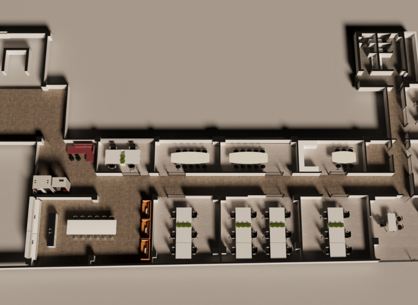 The business space has a total area of 470 m², located on the first floor, and offers: