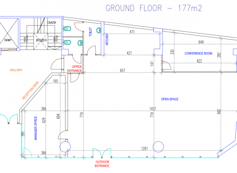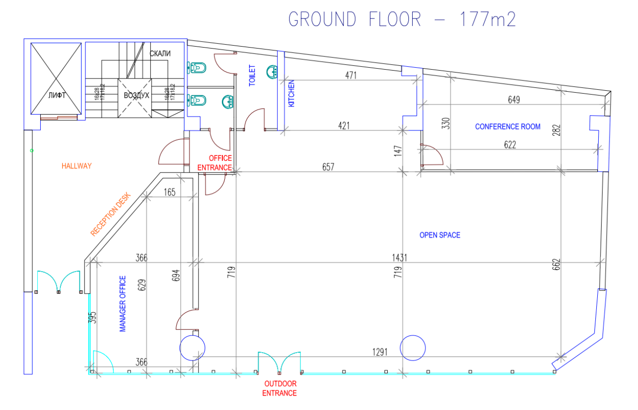 Business/Office spaces available for rent in Center, with a total area of 177m2 in a business building near the main square.