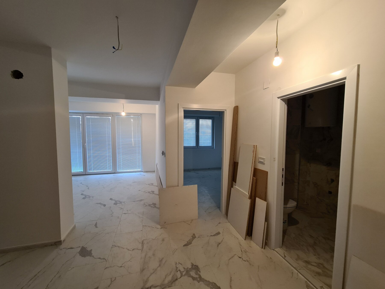 The apartment with an area of 50m2 has one large room, kitchen, one small room and toilet, while the apartment with an area of 75m2 has one large room, equipped kitchen, two smaller rooms and two toilets.
