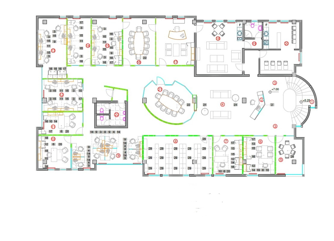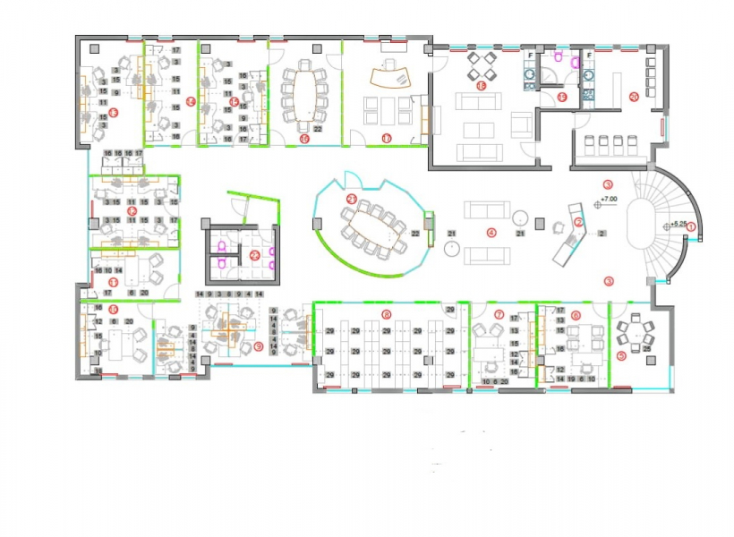 The building consists of several offices, conference rooms and an equipped kitchen.