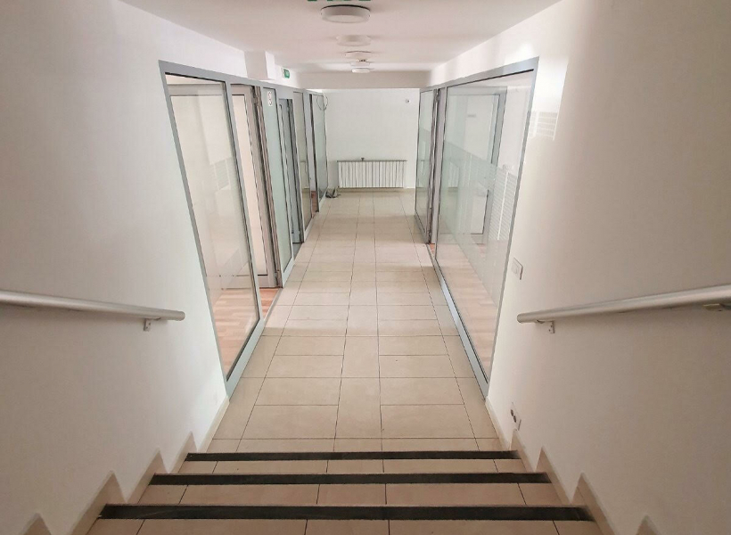 - The surface of the ground floor is 230m2 and has three offices and a toilet.