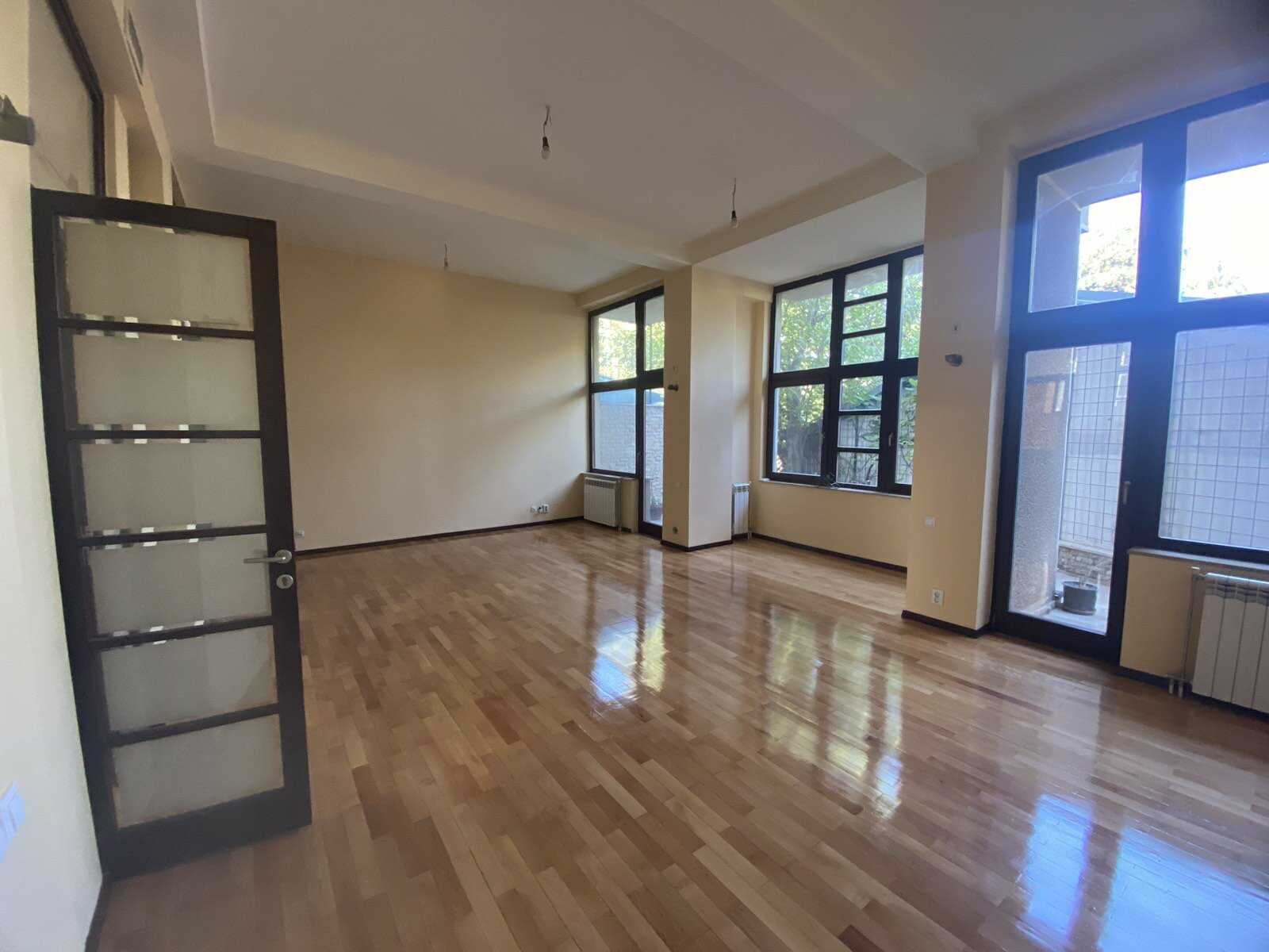 The heating in the space is regulated through central heating.