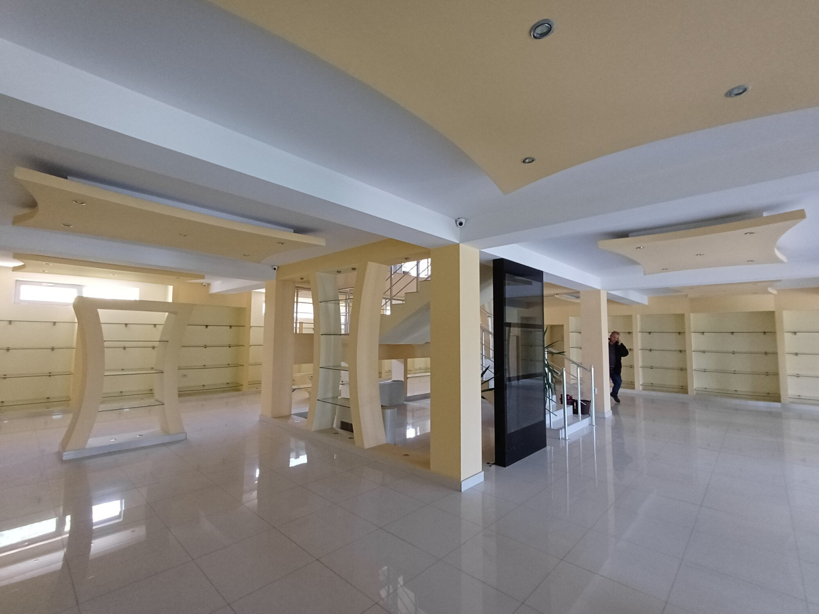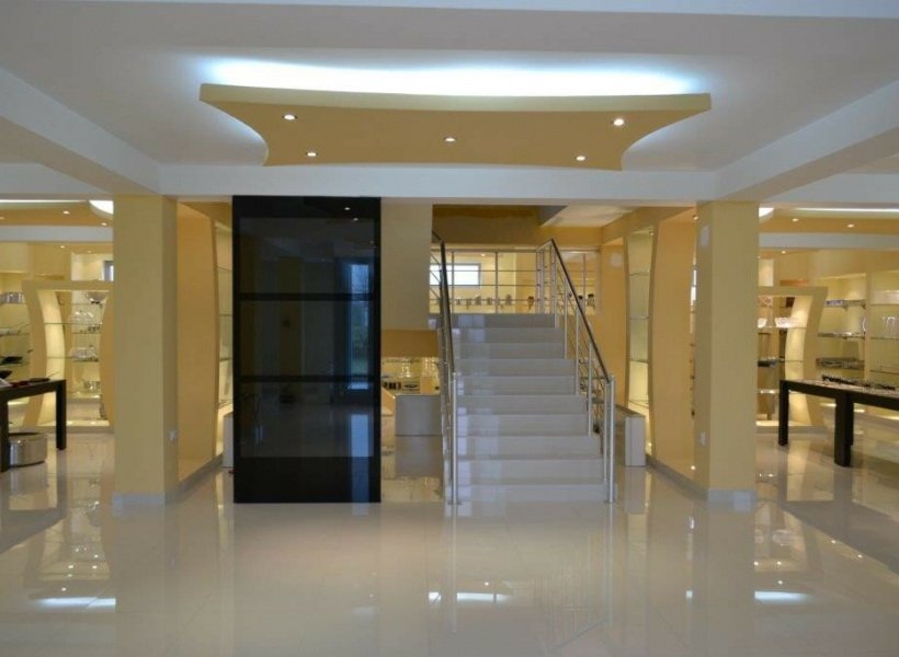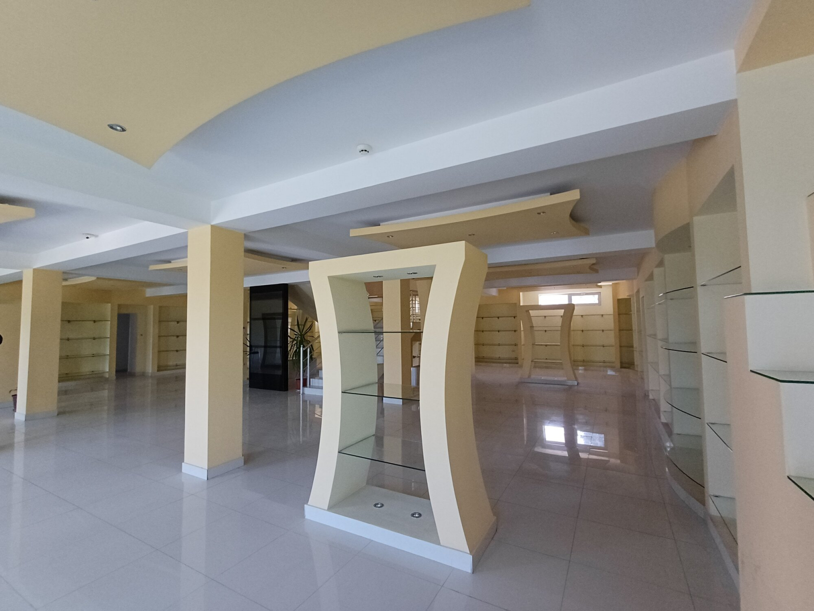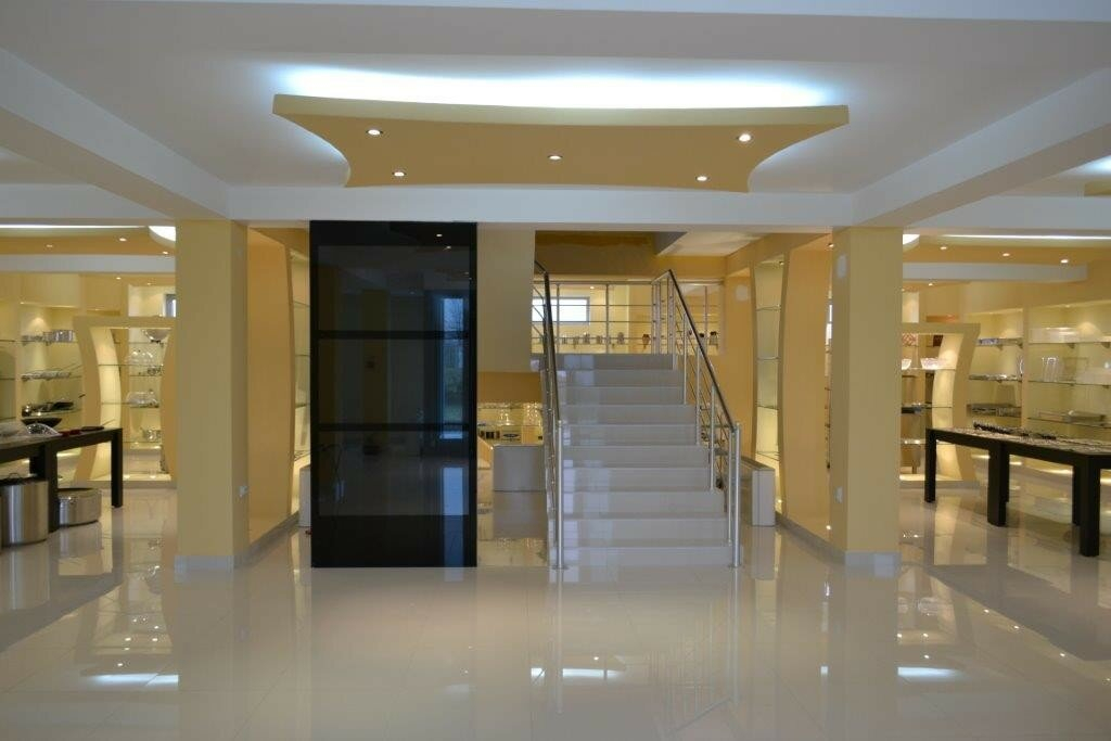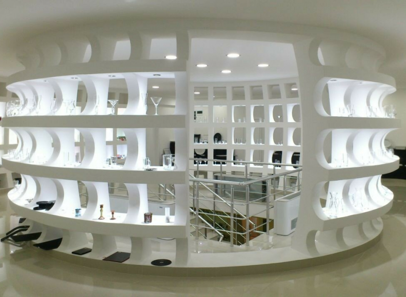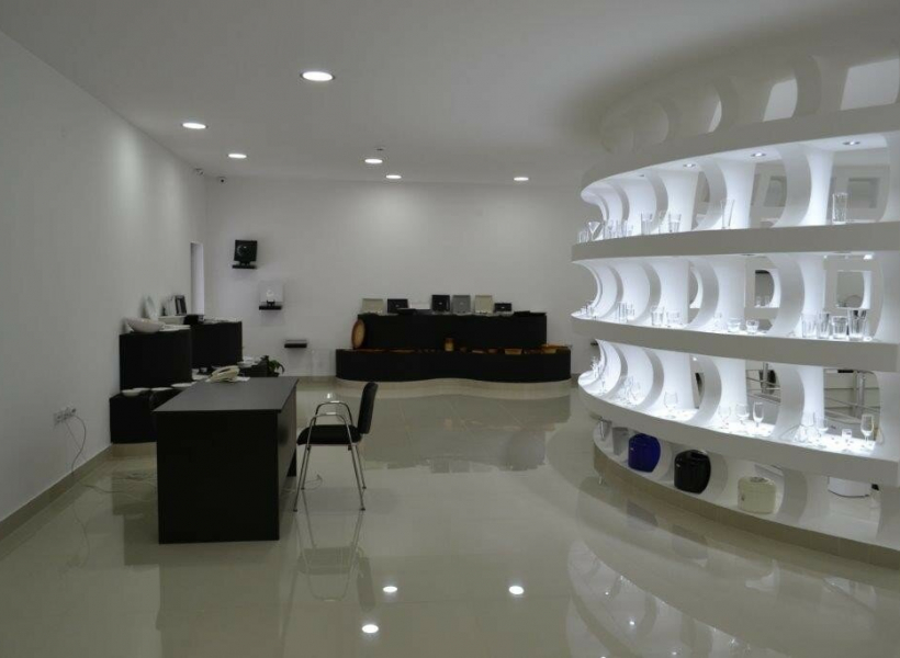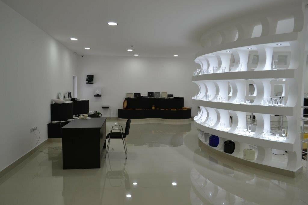 - Function: Exhibition hall, with Knauf (plasterboard) and glass, and granite tiles throughout the space.