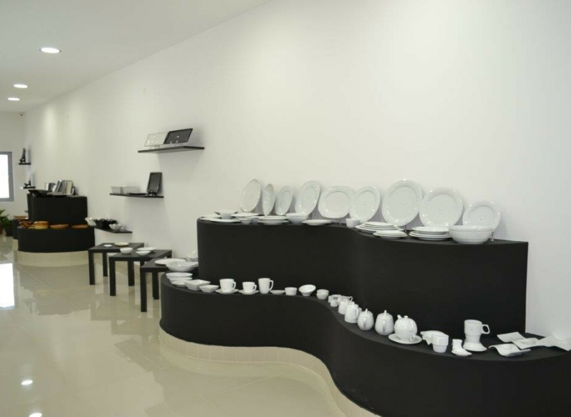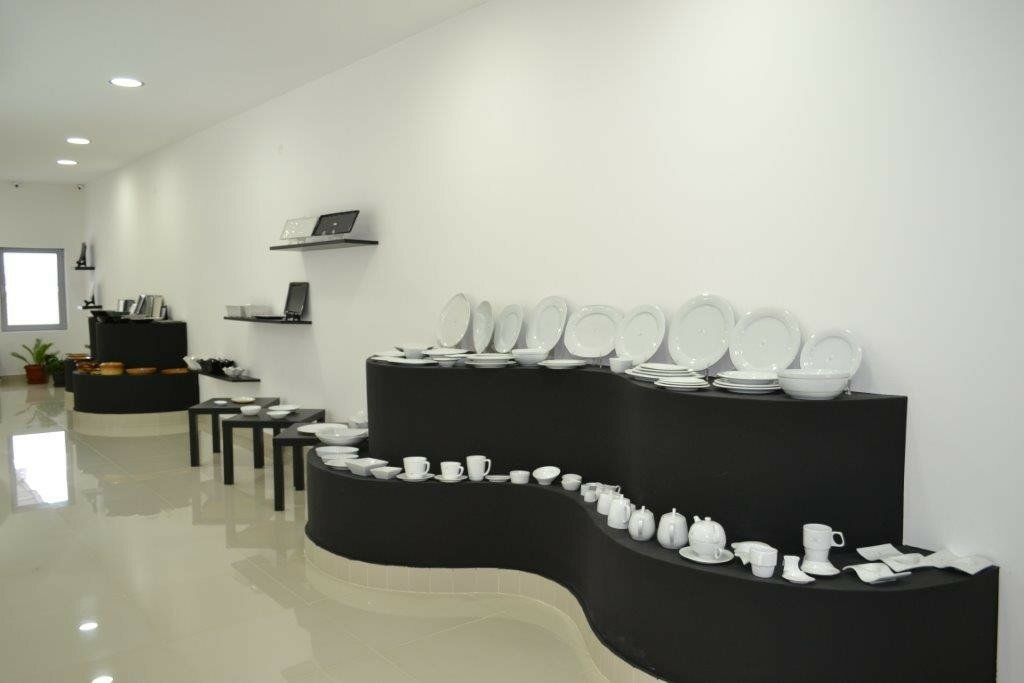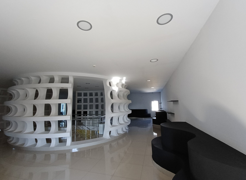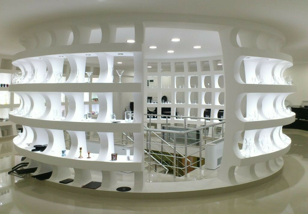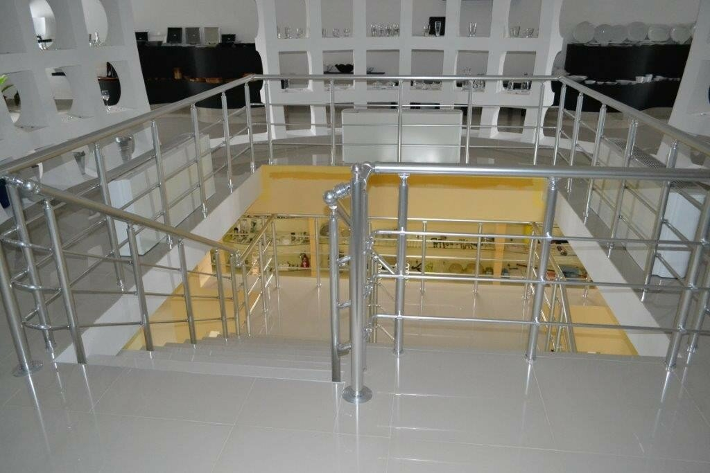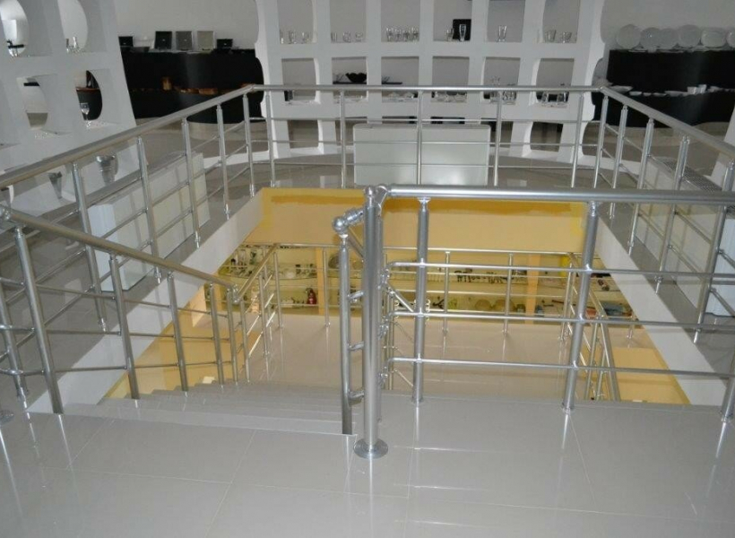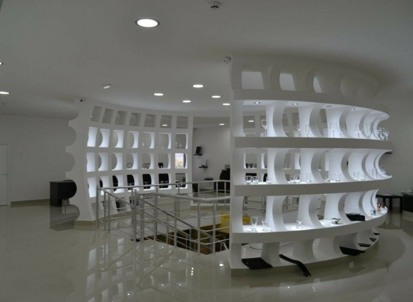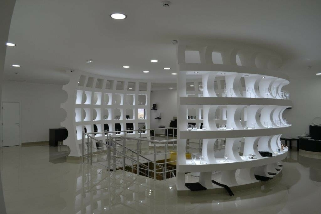 - Function: Exhibition hall, with Knauf (plasterboard) and glass, and granite tiles throughout the space.