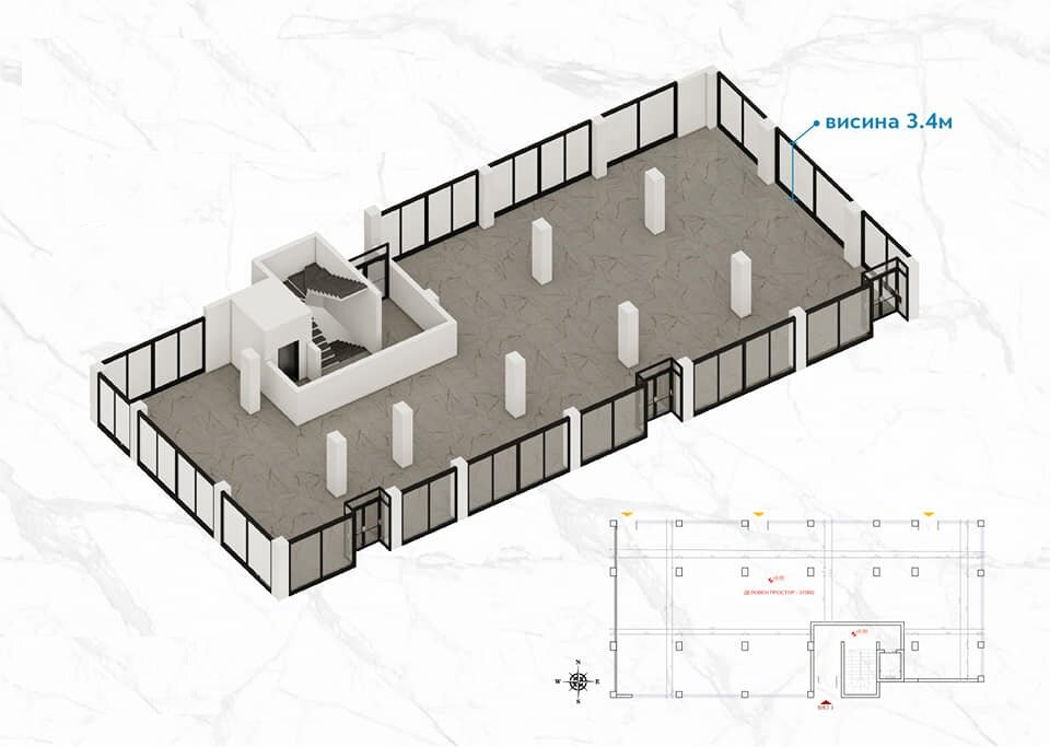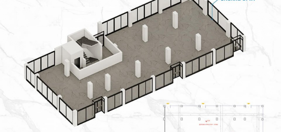 The business space has an area of 375m2 and a height of 3.4m, on the ground floor and the building is in the final stage of construction.