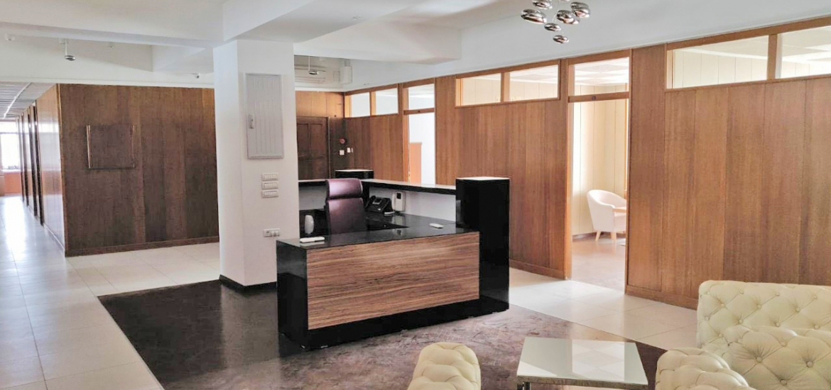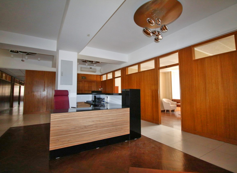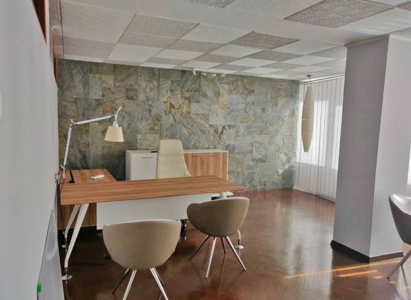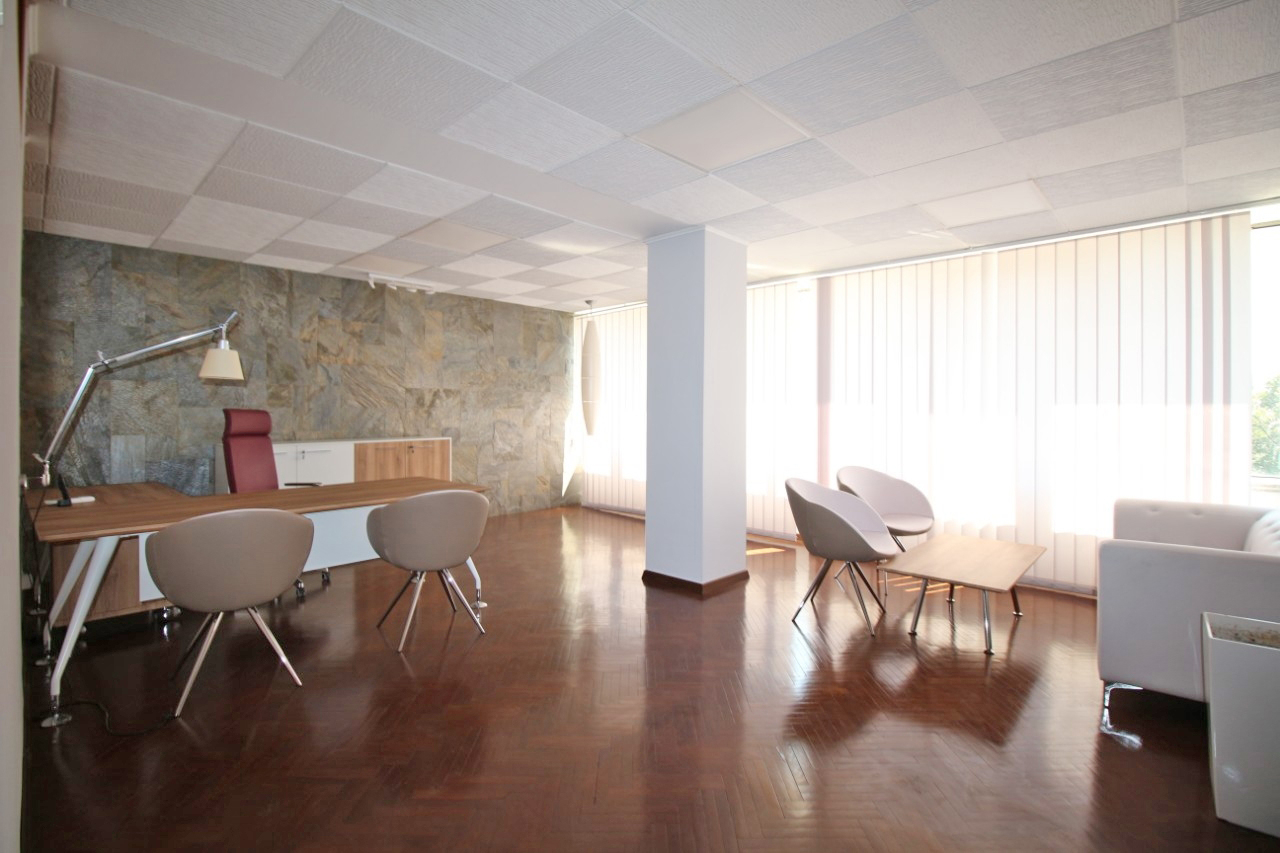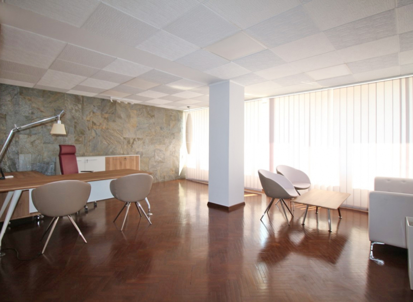 The office space is furnished with exclusive furniture and has parking spaces.