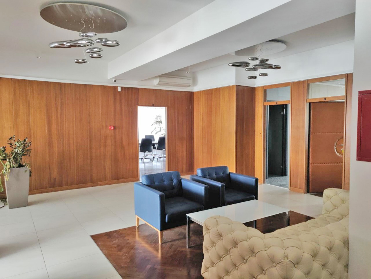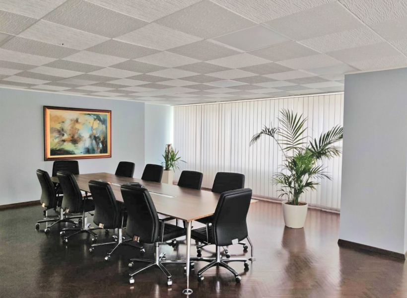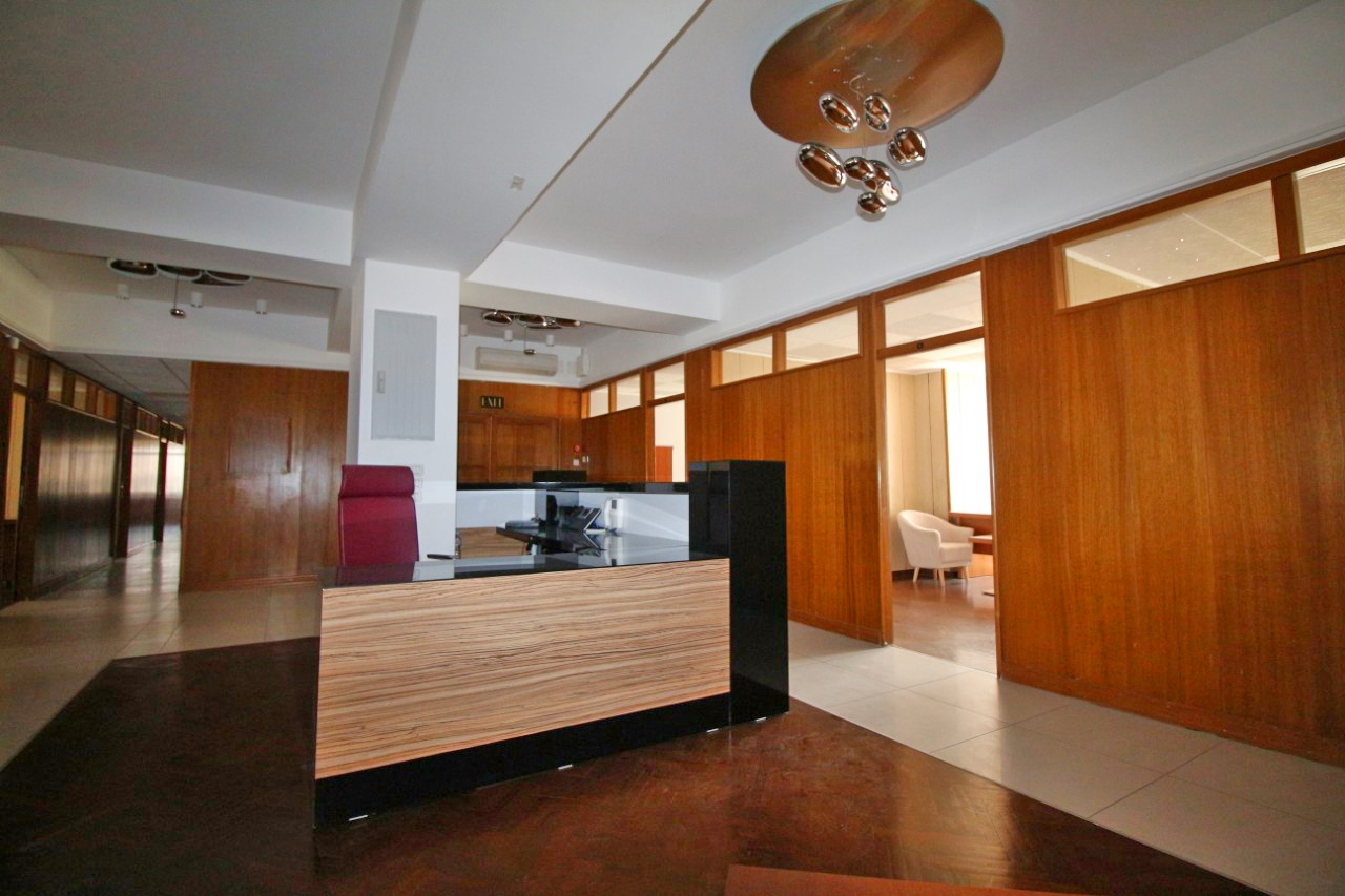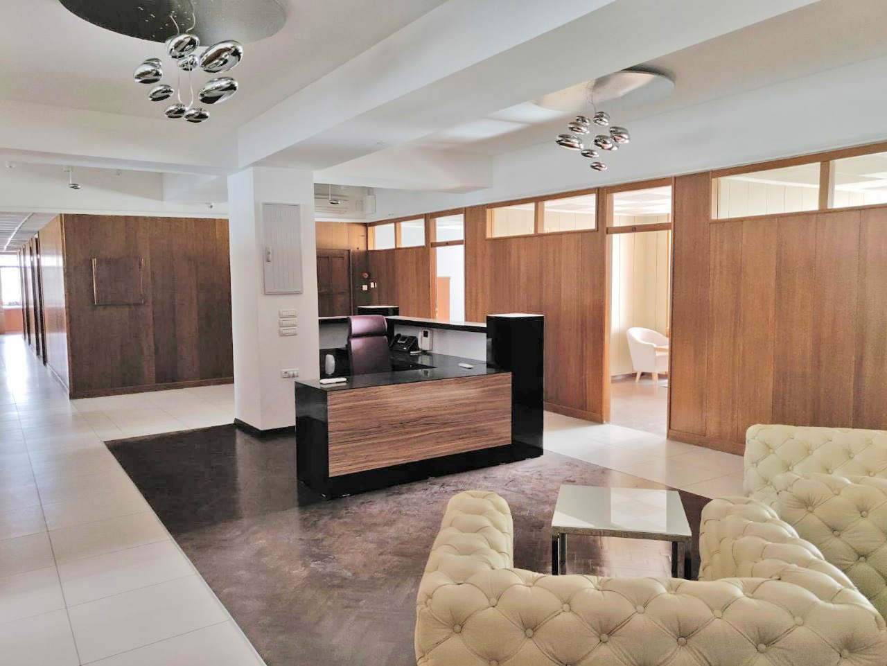 The office space is furnished with exclusive furniture and has parking spaces.