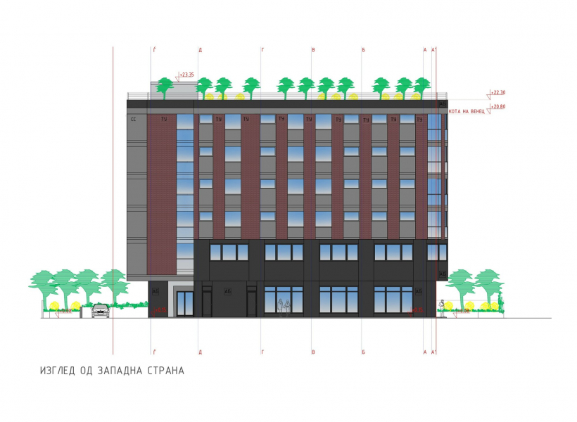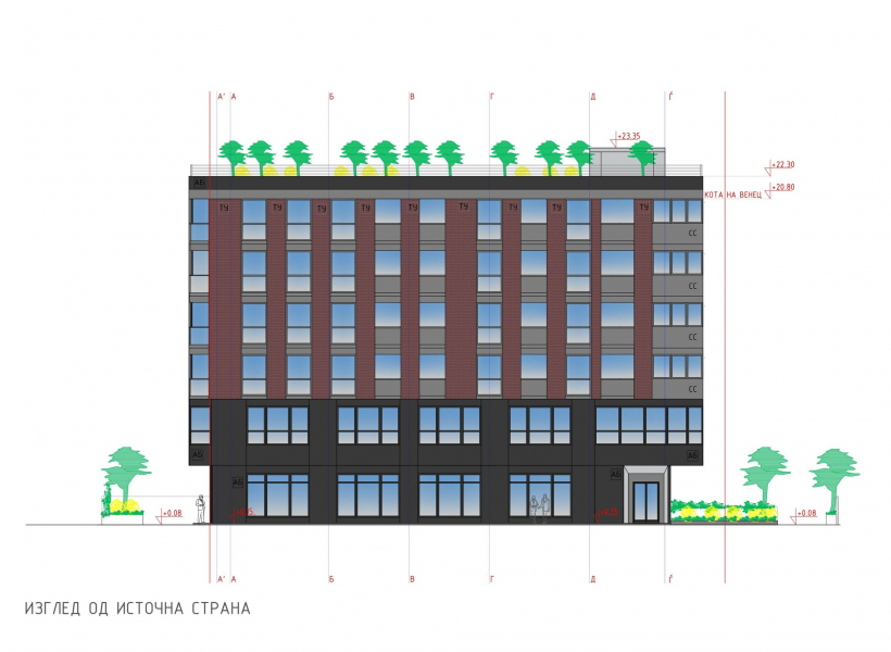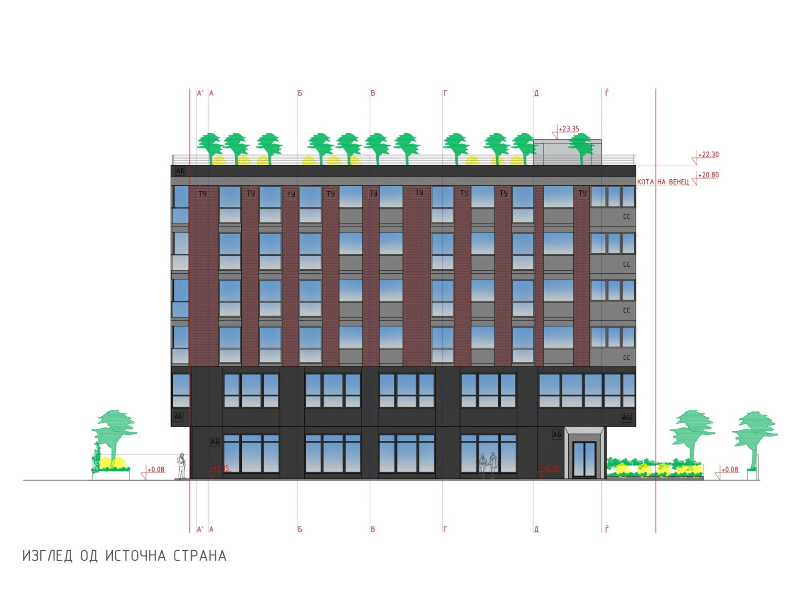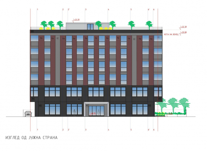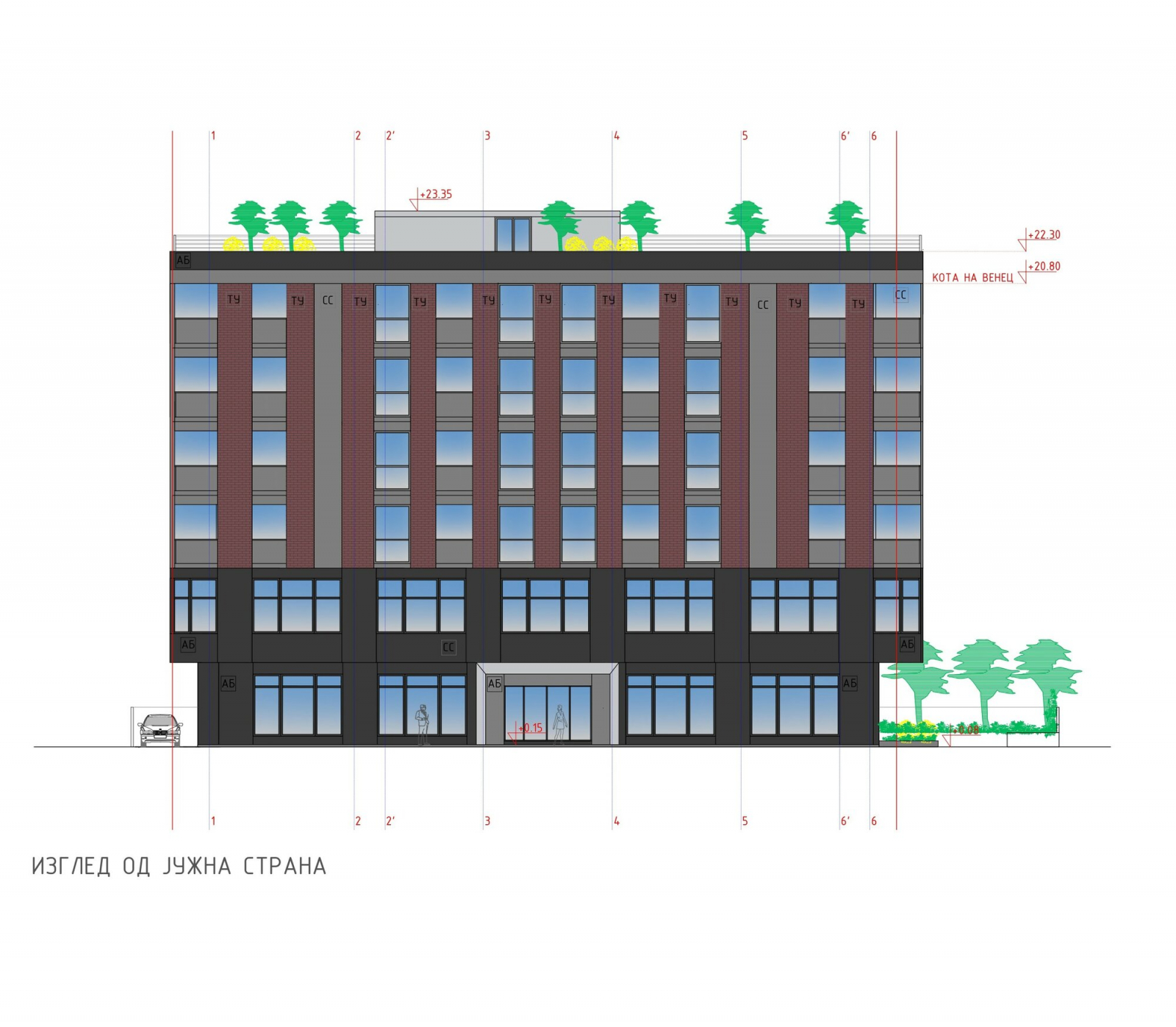 The building has an area of 5250 m2 gross, on 6 levels (ground floor and 5 floors).
