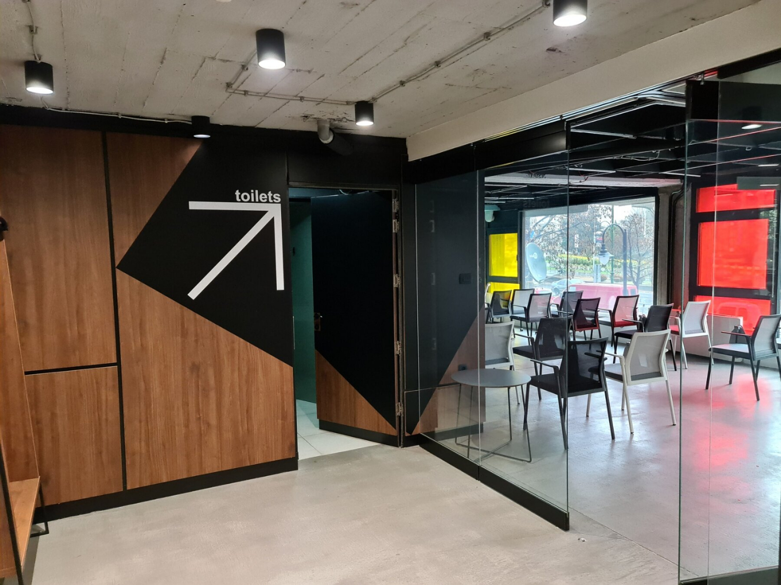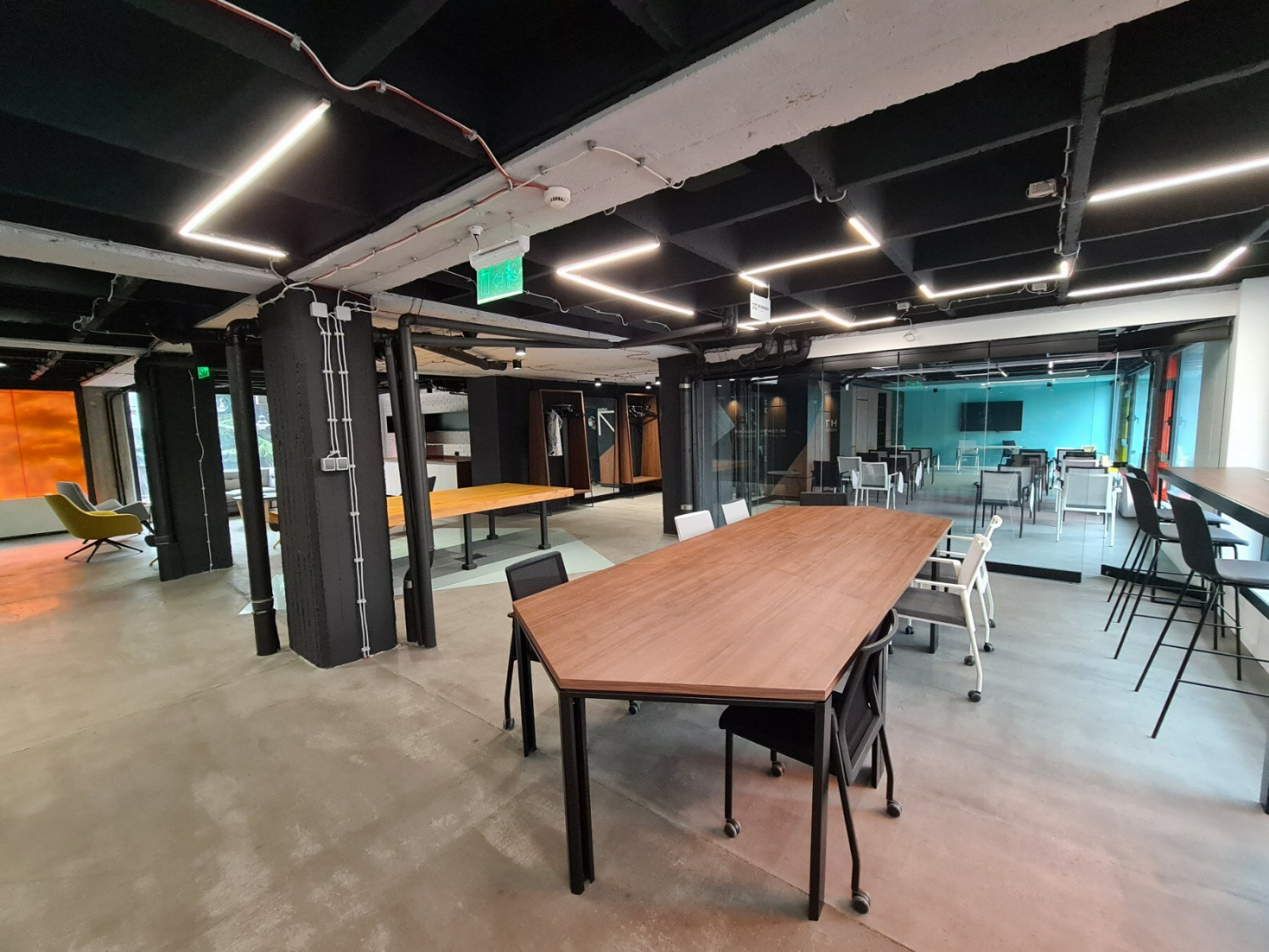 The space is divided into offices with glass partitions, conference rooms, kitchen and toilets. Heating and cooling is through fan coils installed in each room and the space its self has a ventilation system.
