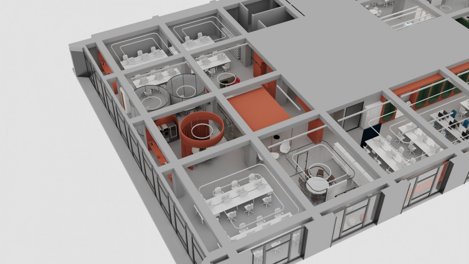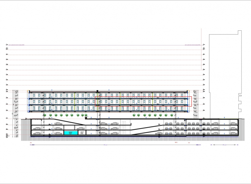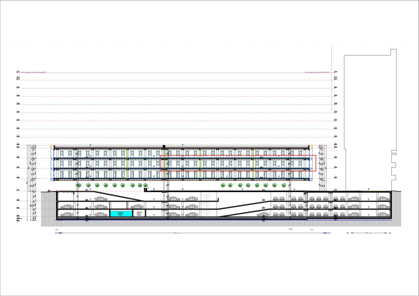 Parking is implemented as one integral space for the entire complex. The access to the minus levels is provided from three sides, which facilitates the communication of a large number of vehicles.