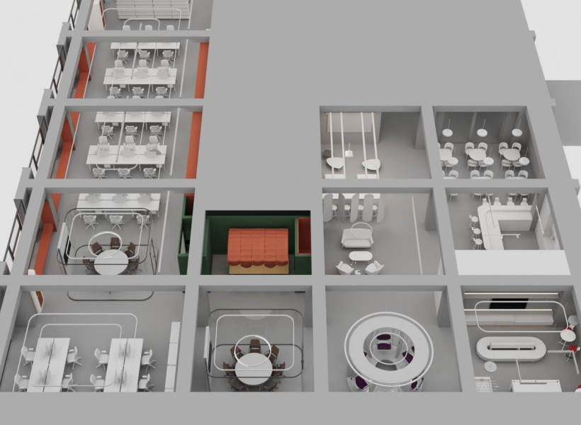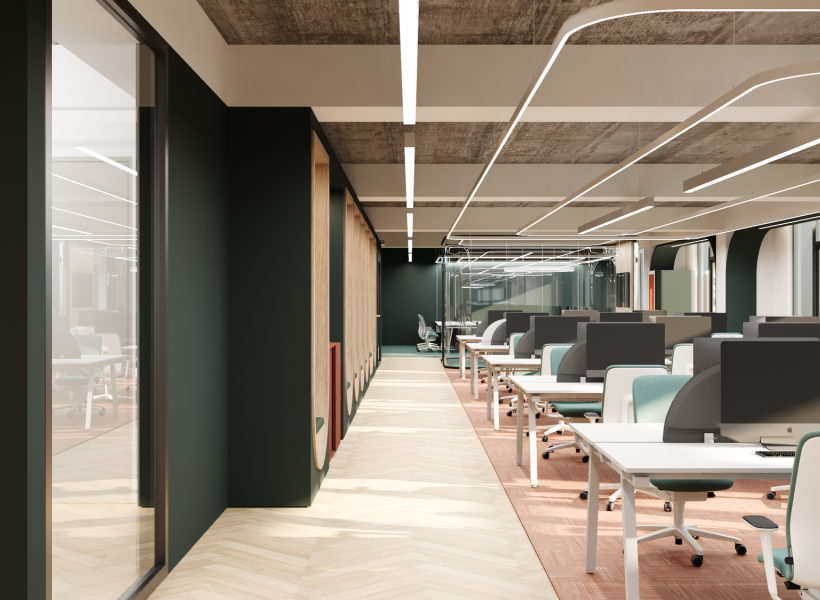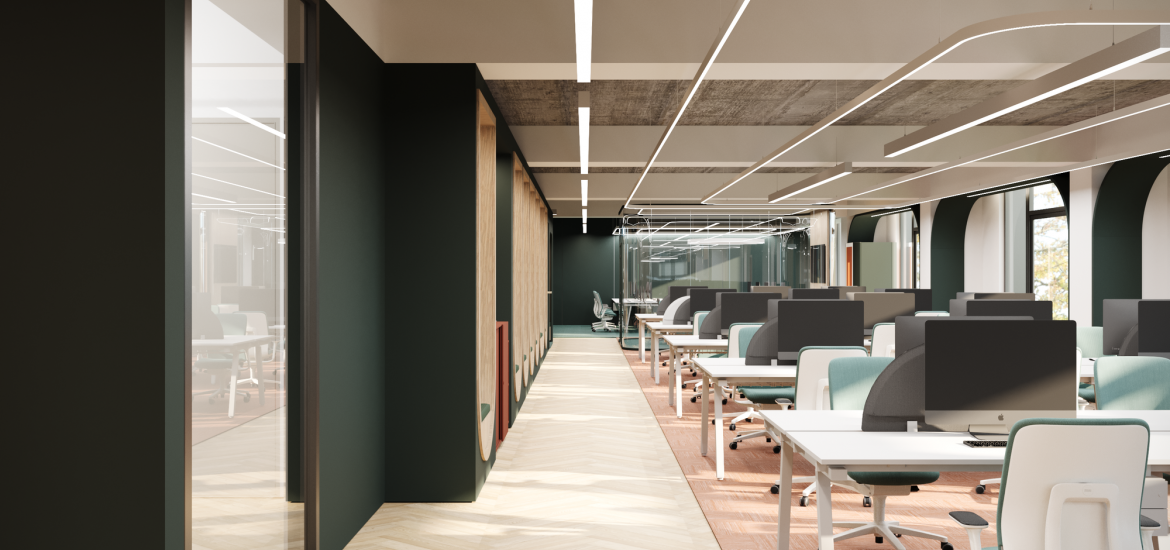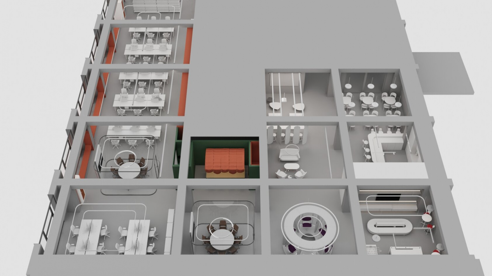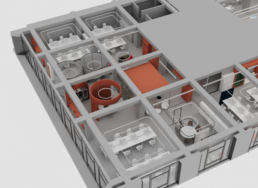 Parking is implemented as one integral space for the entire complex. The access to the minus levels is provided from three sides, which facilitates the communication of a large number of vehicles.