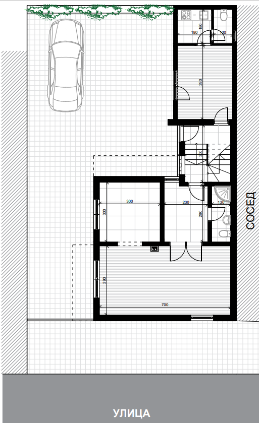 New business space in Center with a total area of 135m2 and a yard of 125m2 is available for rent.