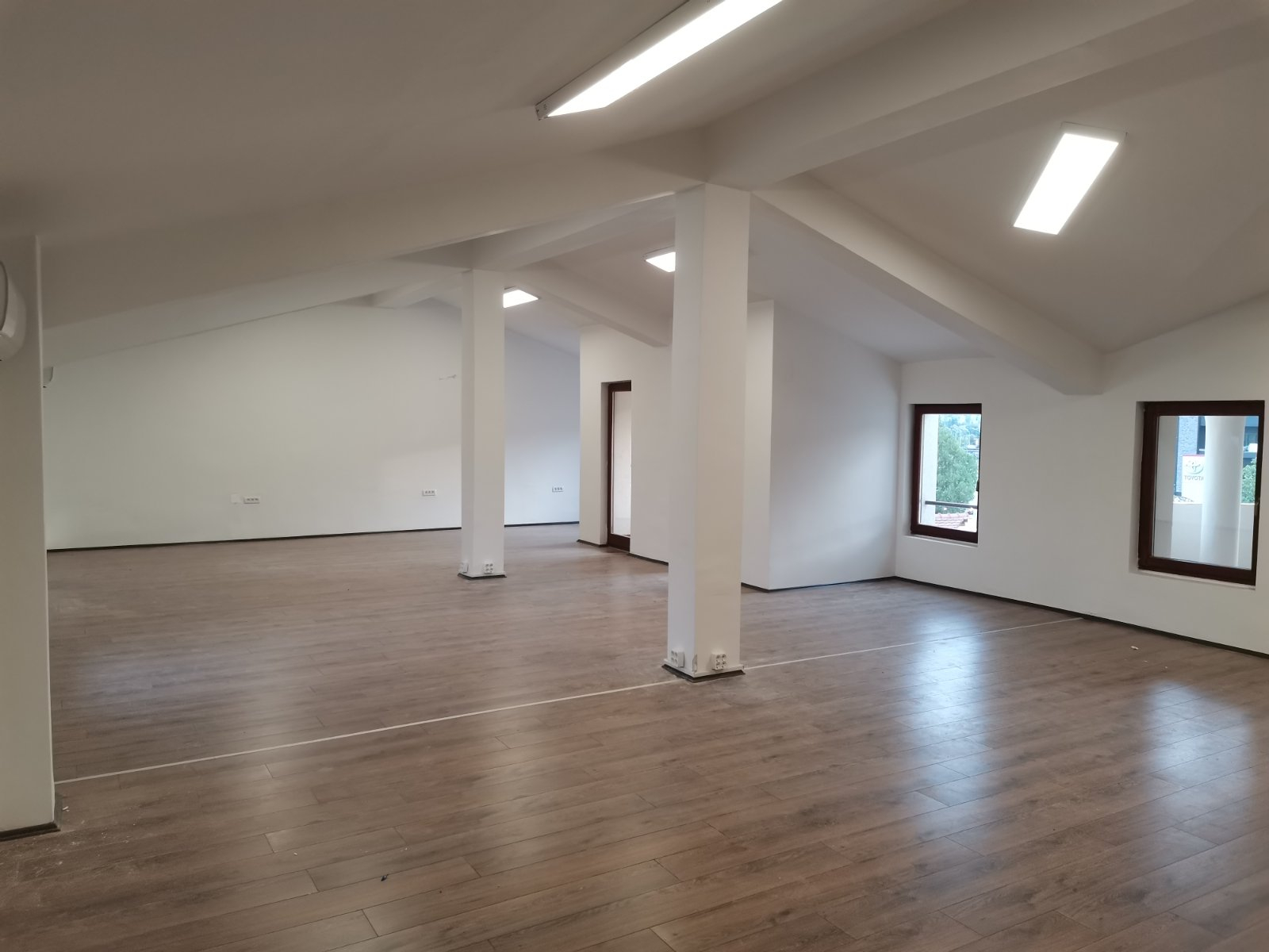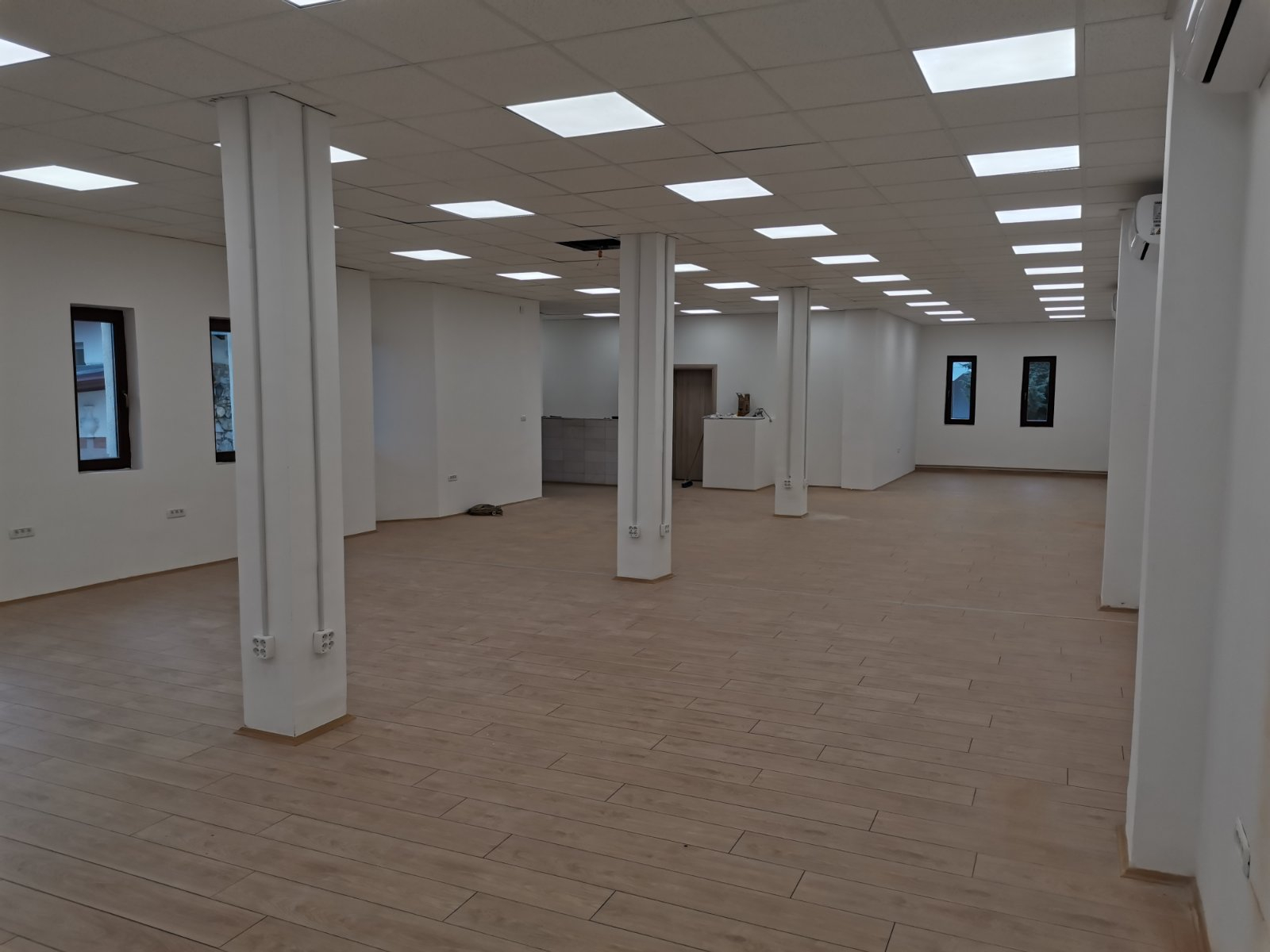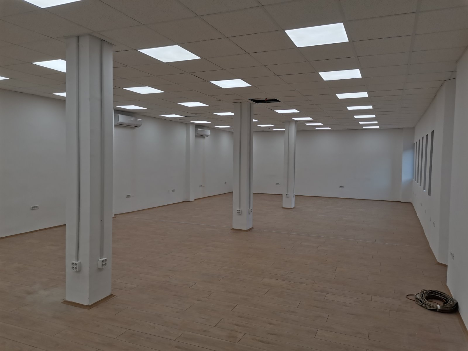 The whole building is insulated with hard pressed thermal facade and modern multi-chamber windows are installed. The lighting is solved with panels with dimensions 600x600 mm and 1200x400 mm. The whole area is covered with a fire alarm system.