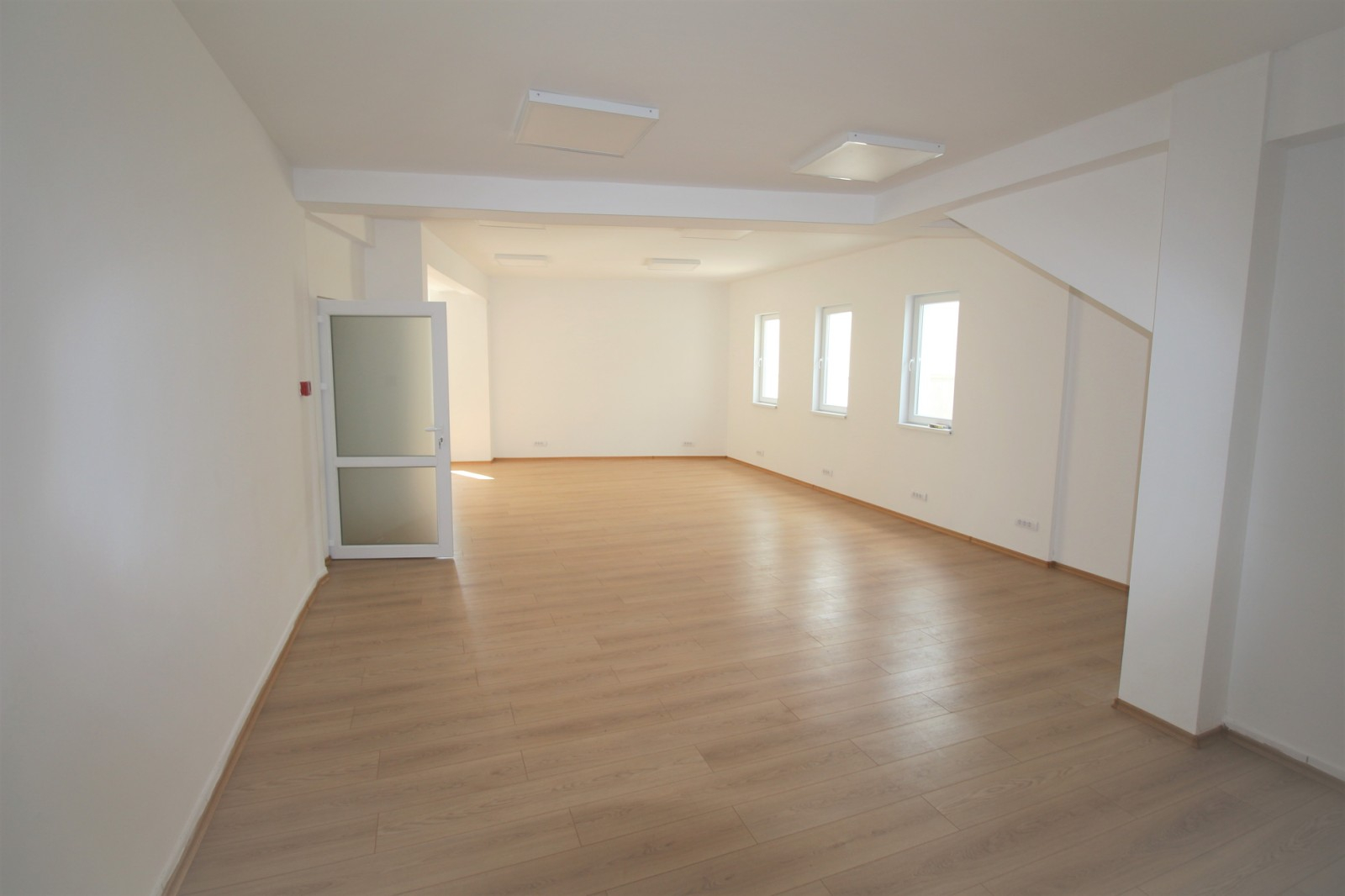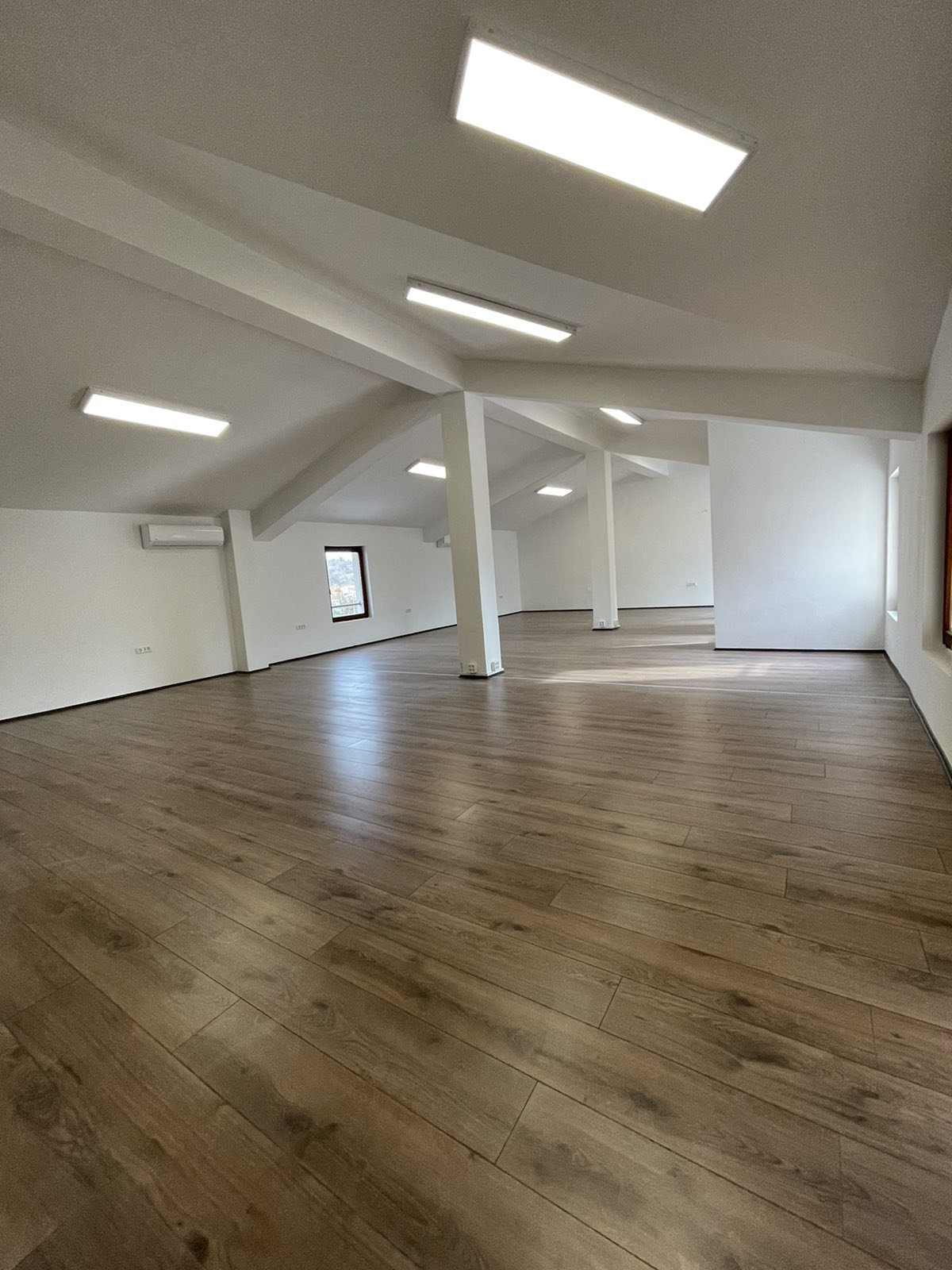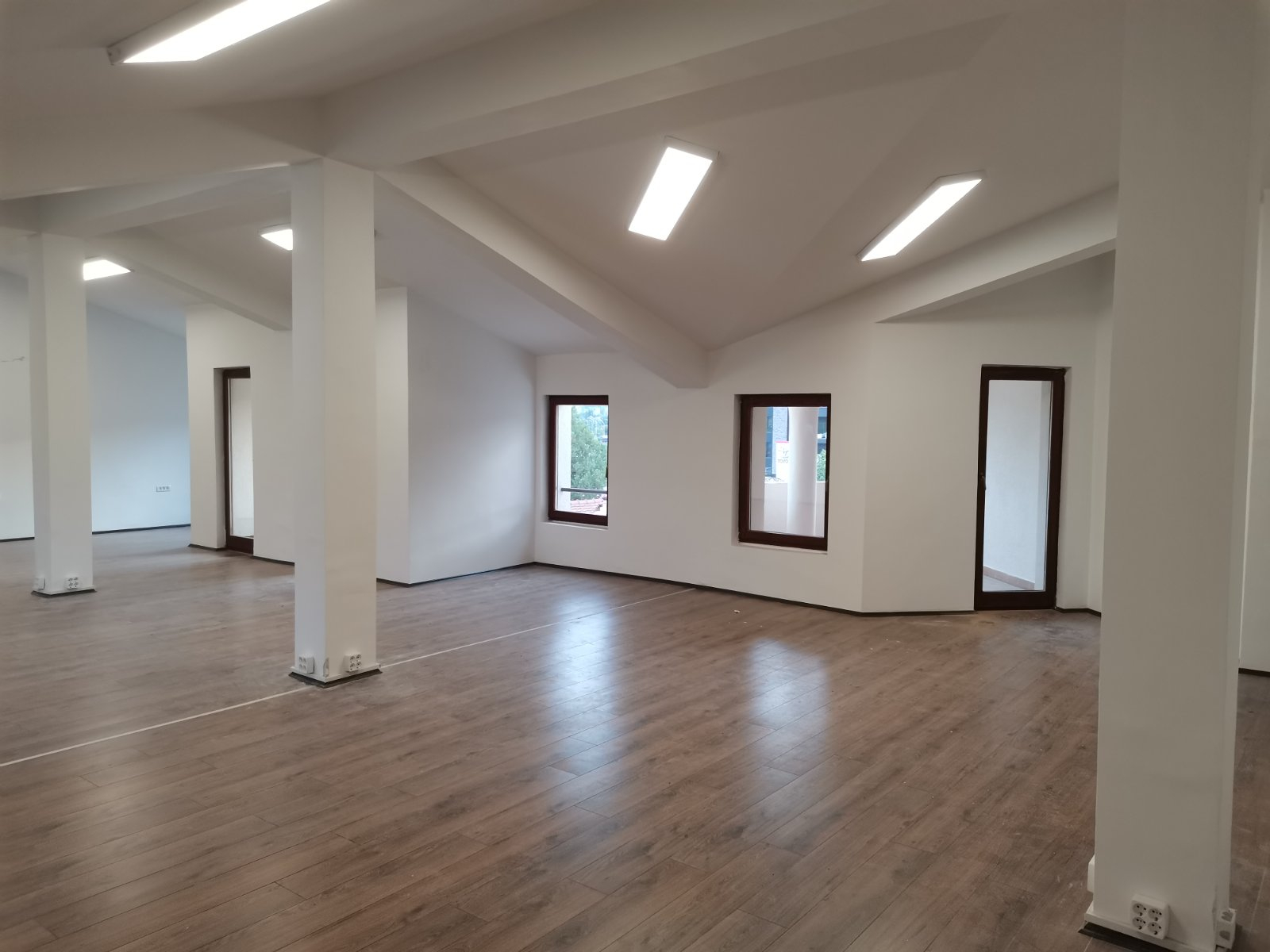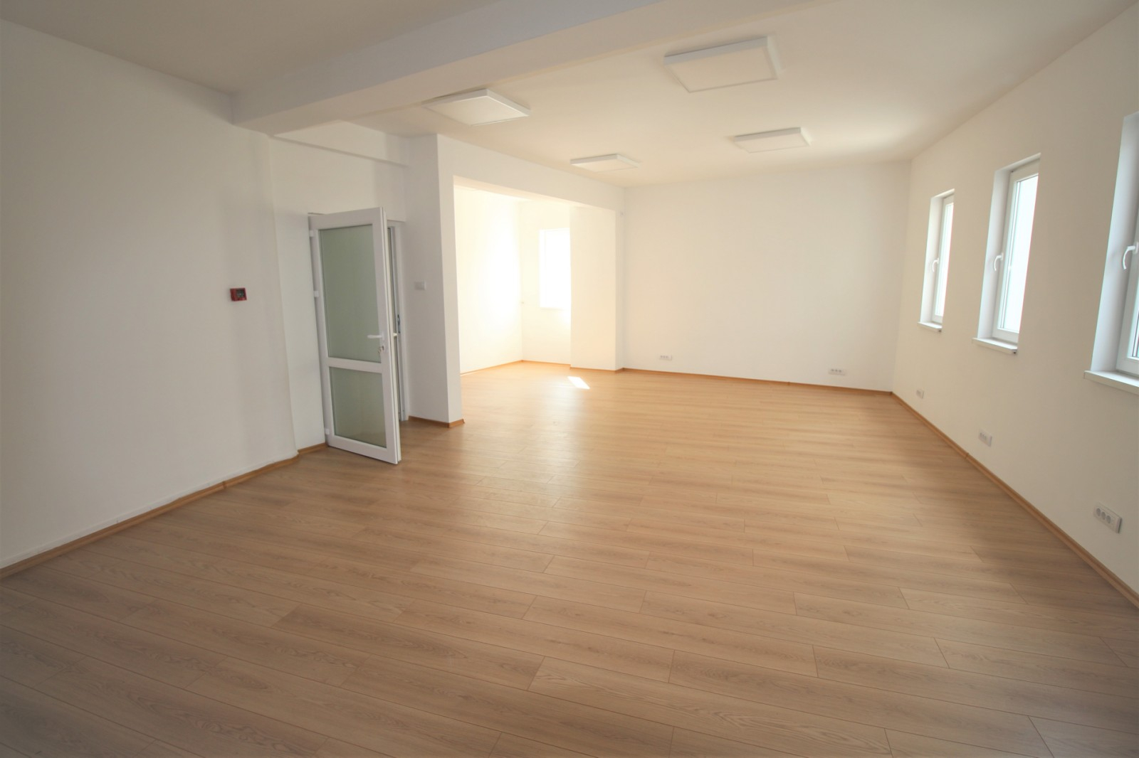 The whole building is insulated with hard pressed thermal facade and modern multi-chamber windows are installed. The lighting is solved with panels with dimensions 600x600 mm and 1200x400 mm. The whole area is covered with a fire alarm system.