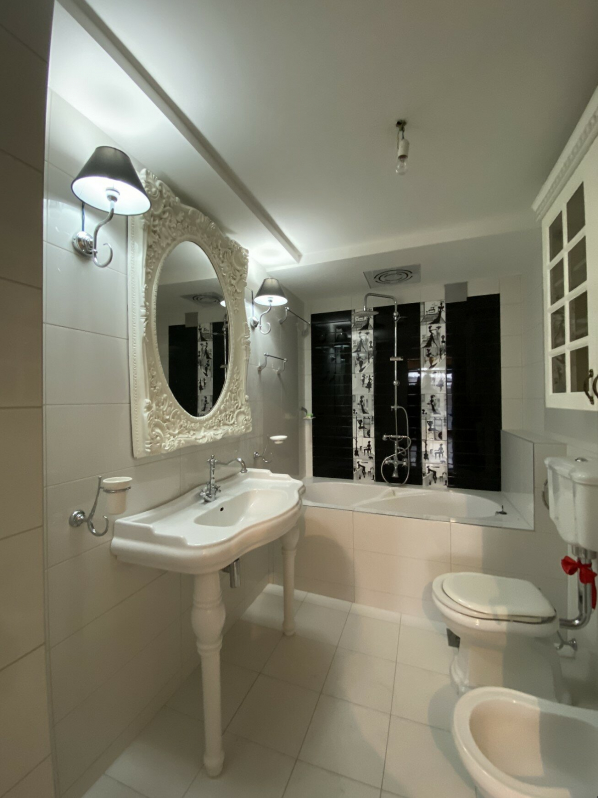 It has one open space, two smaller separate rooms, a kitchen, two bathrooms, a utility room and two terraces.