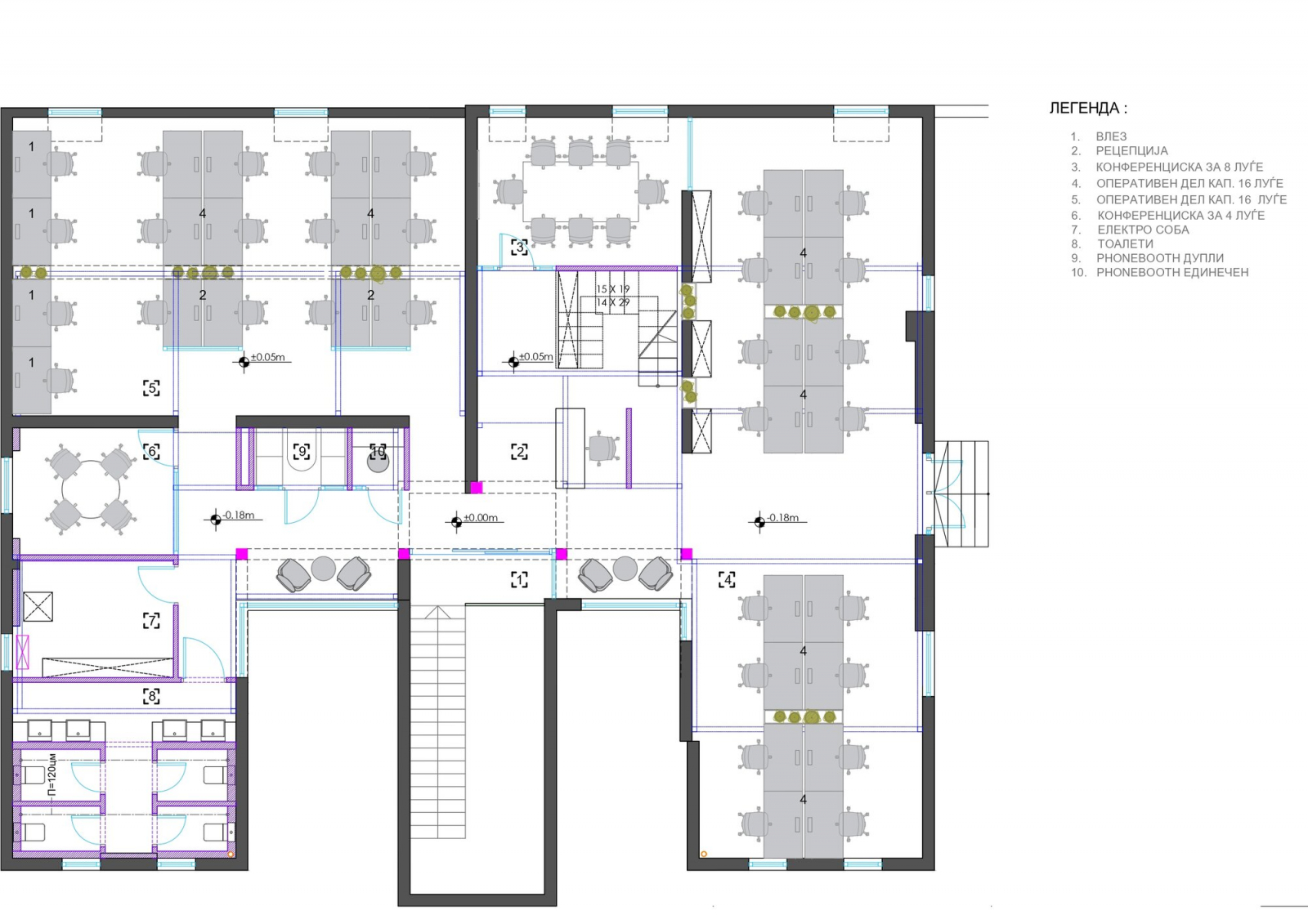 The office space has an area of 380m2 spread on two levels. and has been completely renovated, exclusively located on the central street "Macedonia".