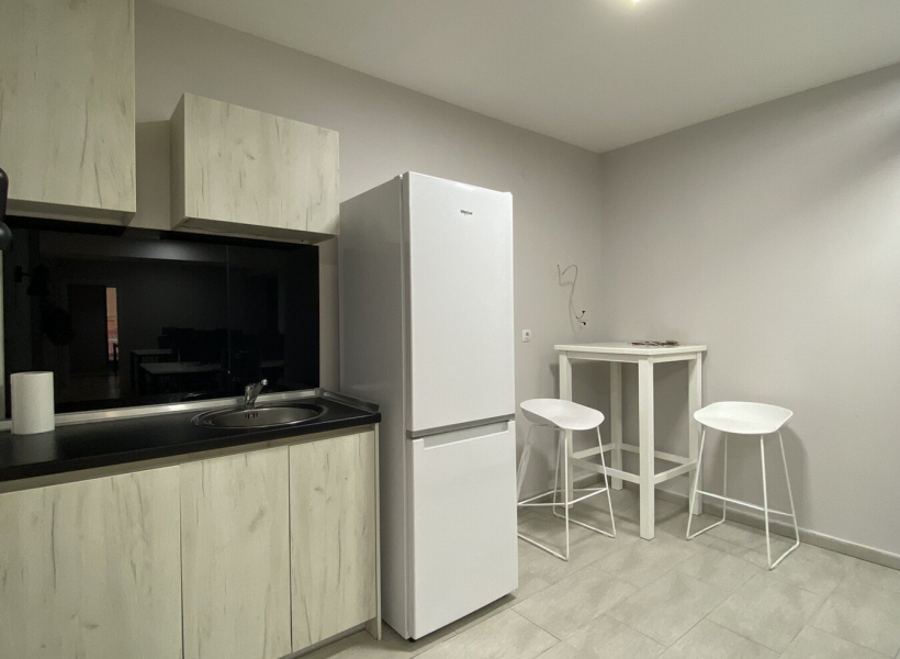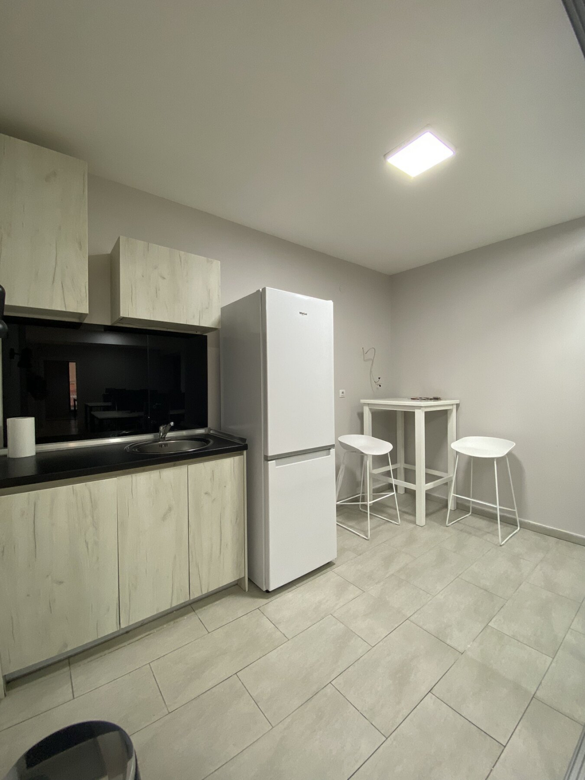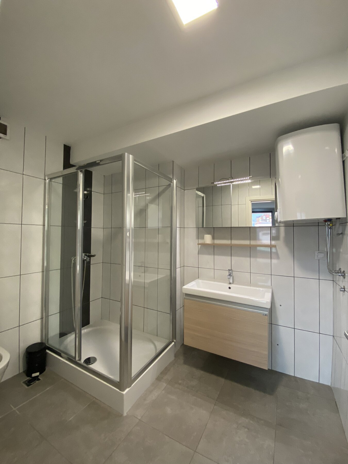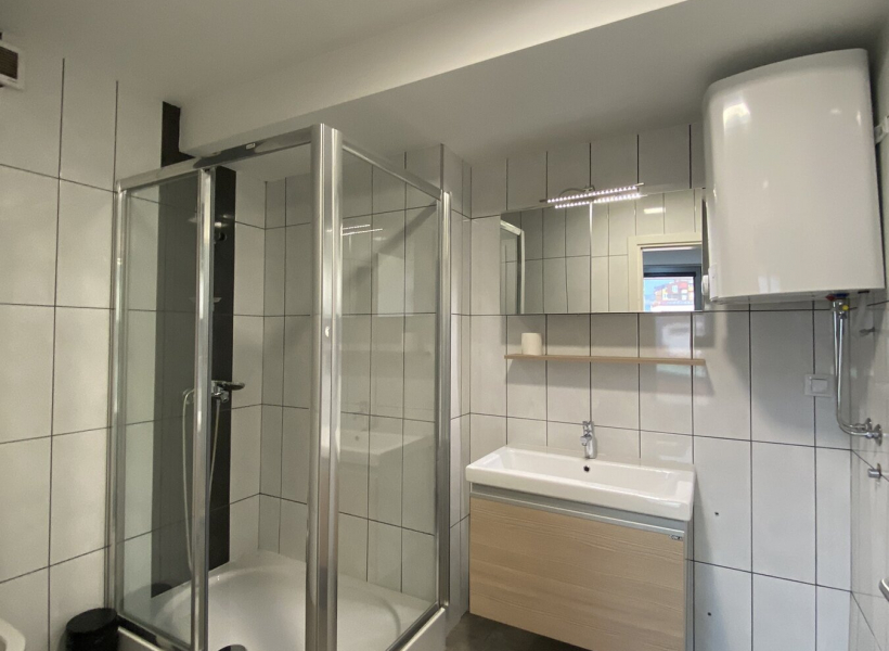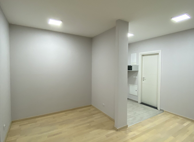 The space has one open office space, two separate offices, two bathrooms, kitchen and a 5m2 terrace.