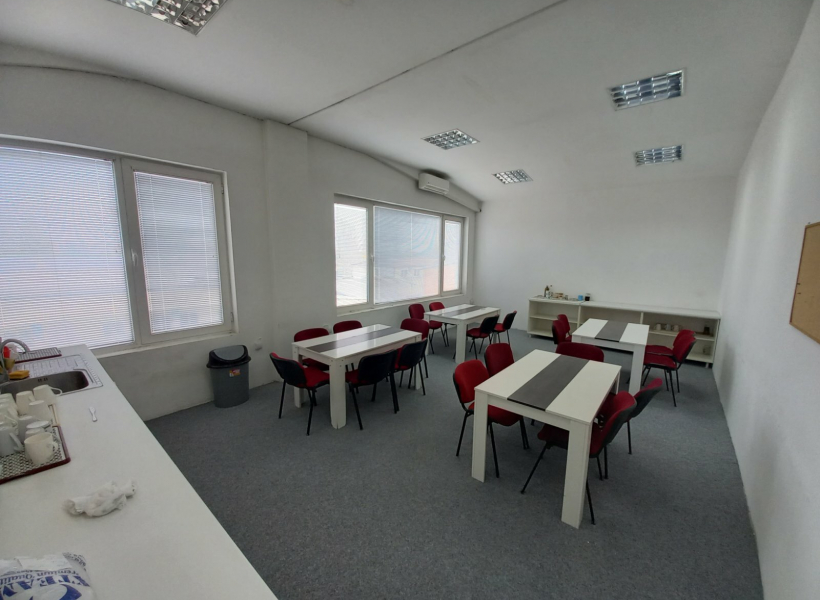 The business space has spacious open space, one conference room, two offices, toilets and a kitchen.