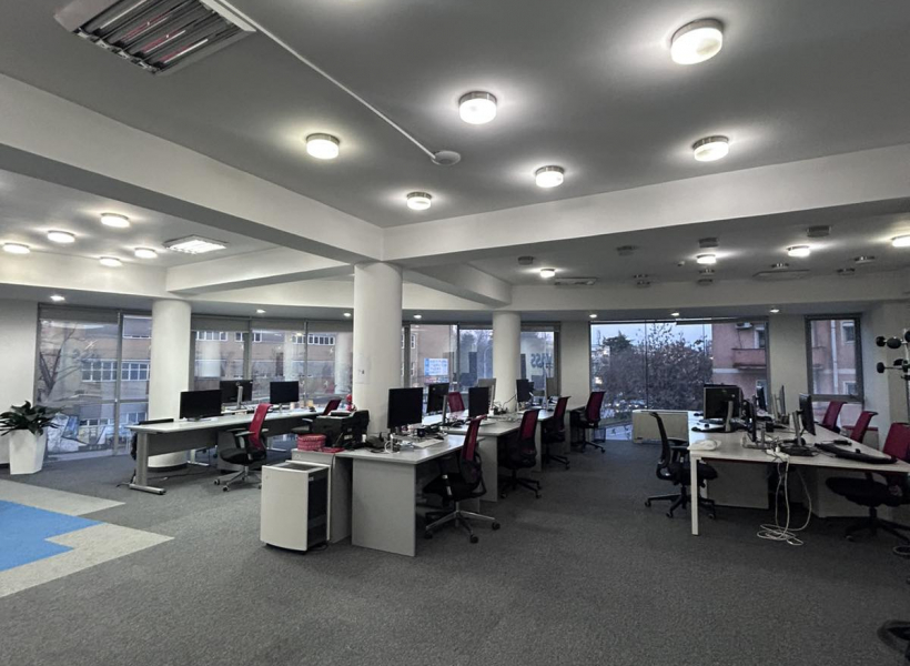 The office space is located on the 1st floor, with a total area of 166 m², and includes: