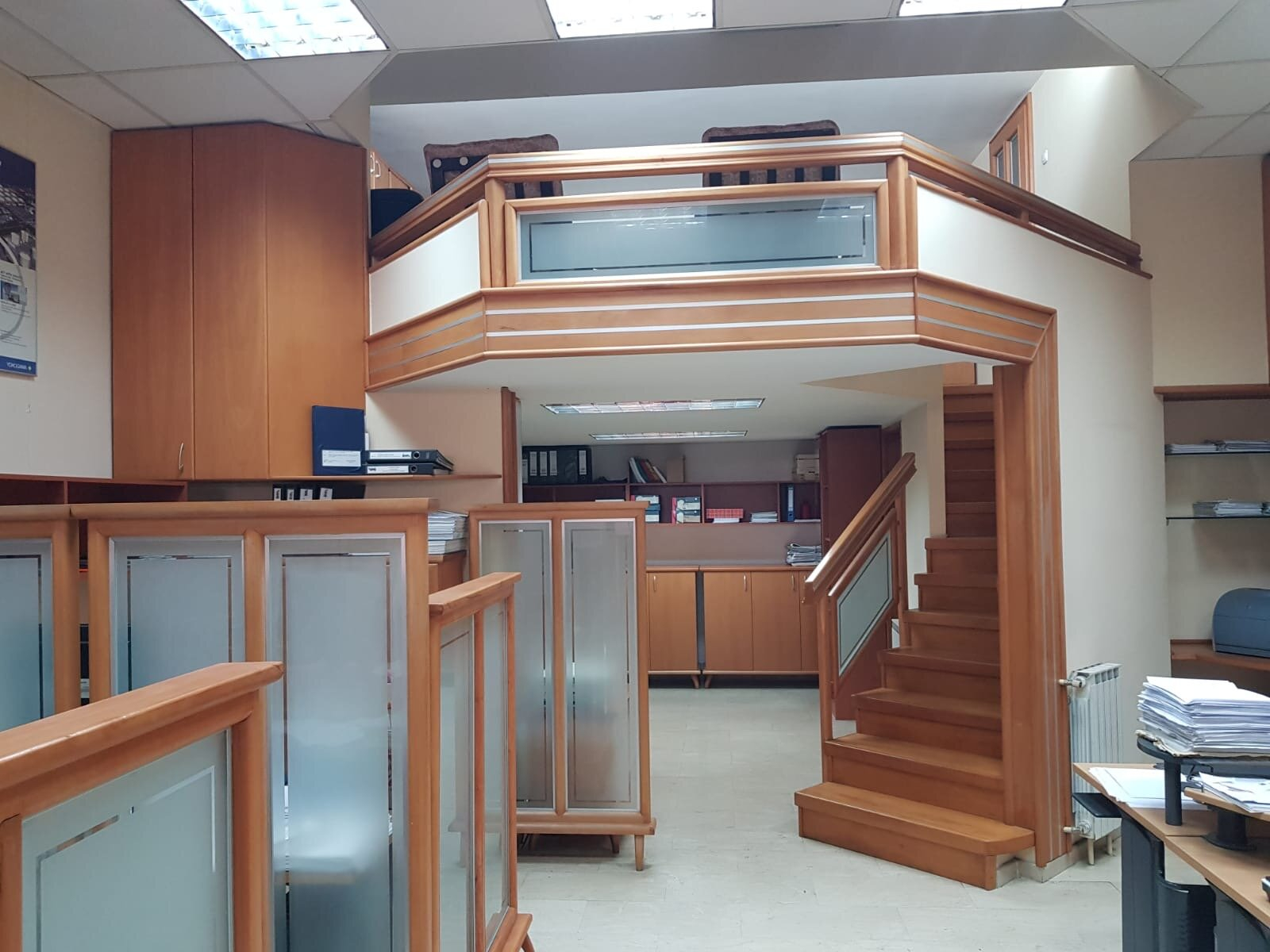 The space consists of one spacious open room, two additional floors, three separate offices, kitchen and two toilets.