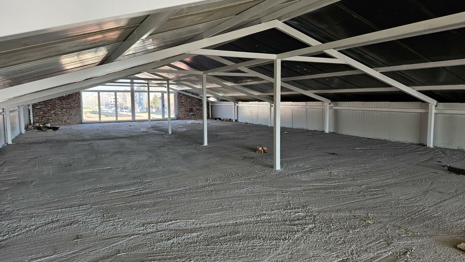 - The second floor has a lower height than normal, where the side walls are 1.40m high. The space is completely open, with 6 steel columns of 15 cm thickness in the middle of the space. On both sides of the attic there are large windows for natural light in the space.