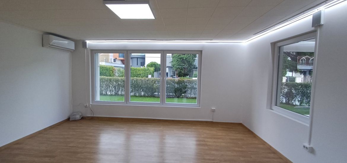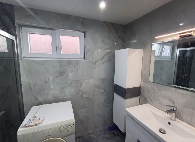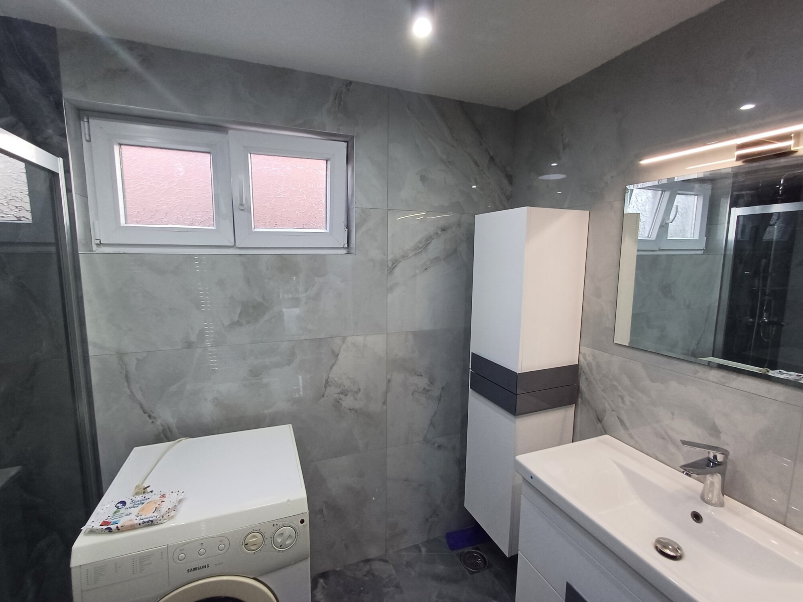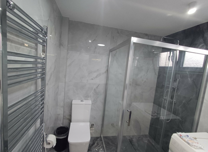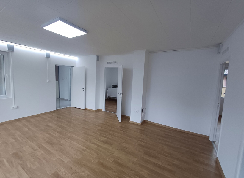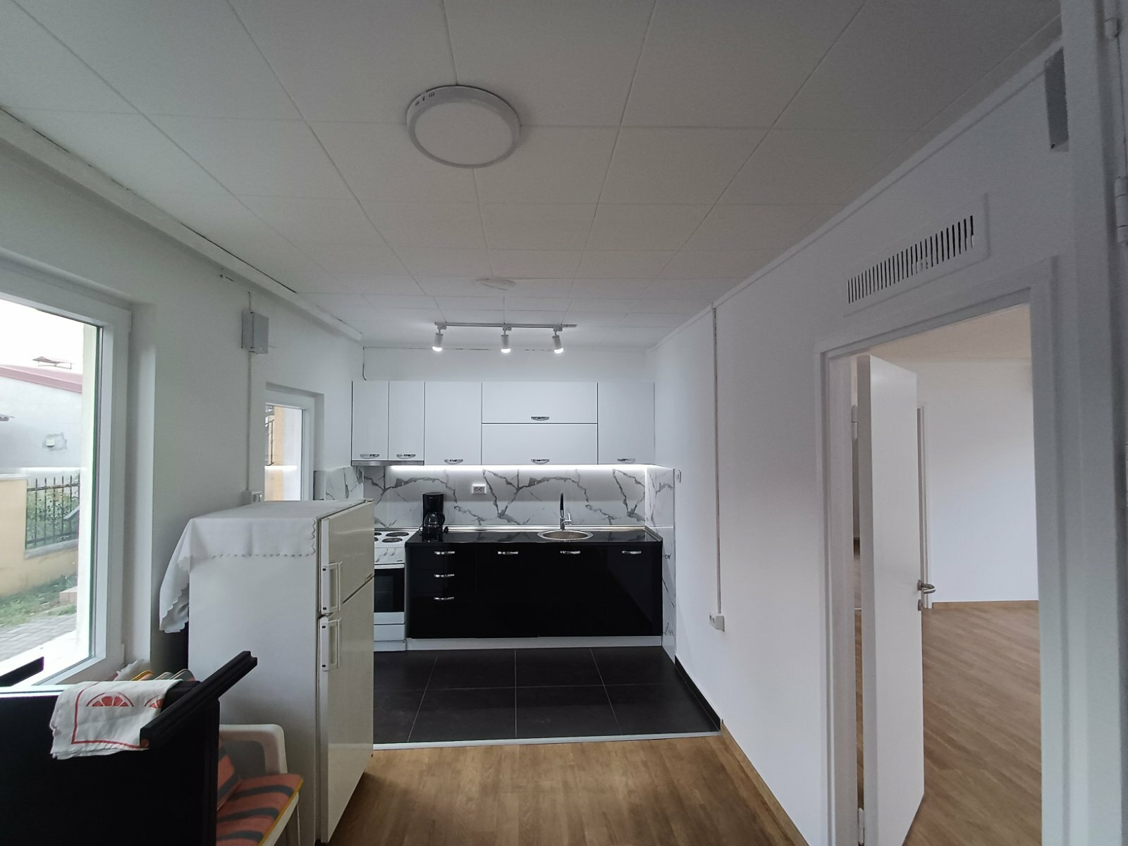 It has a patio, 1 large room and 2 smaller ones, a large kitchen, 1 bathroom.
