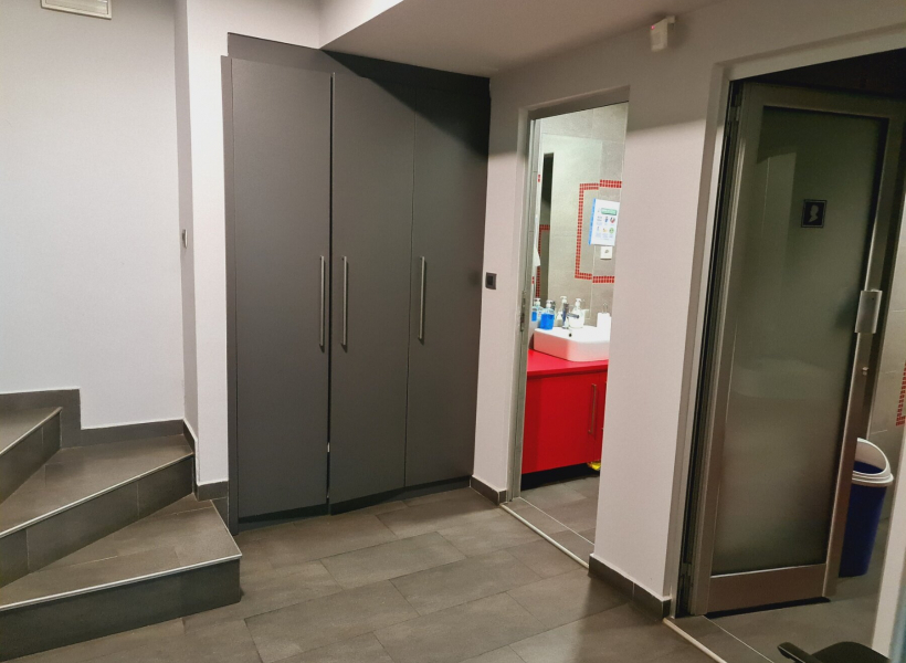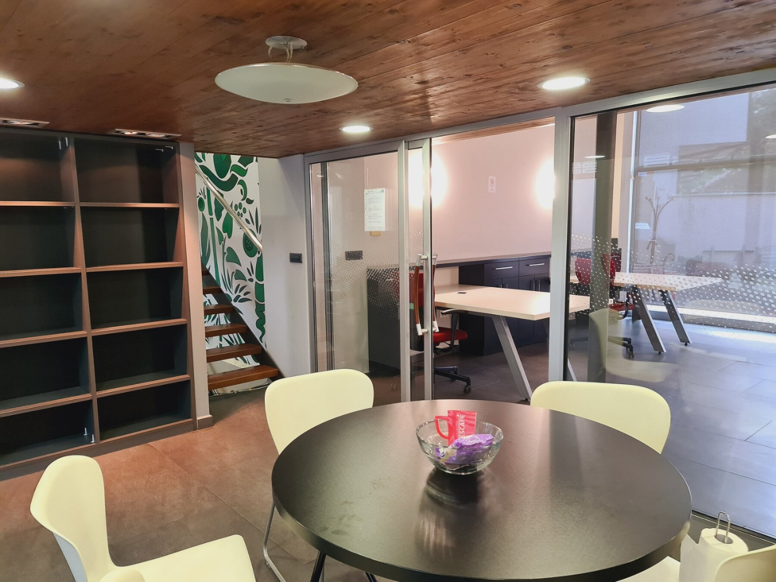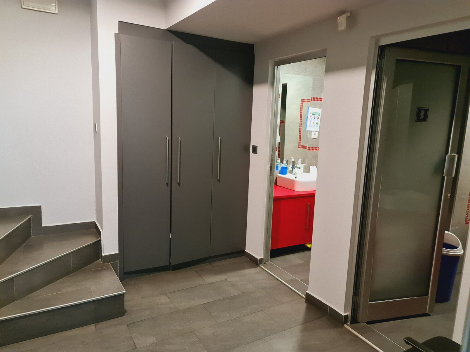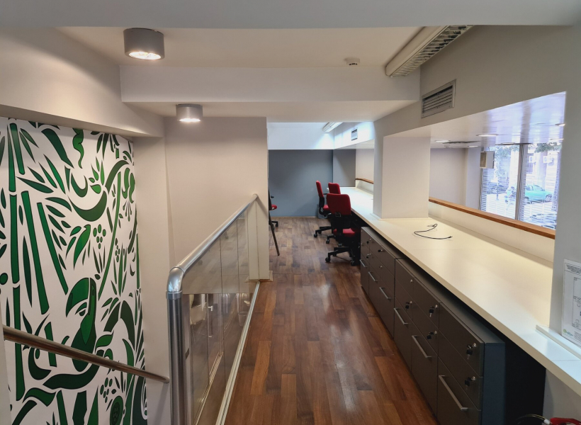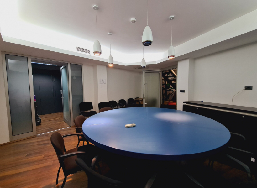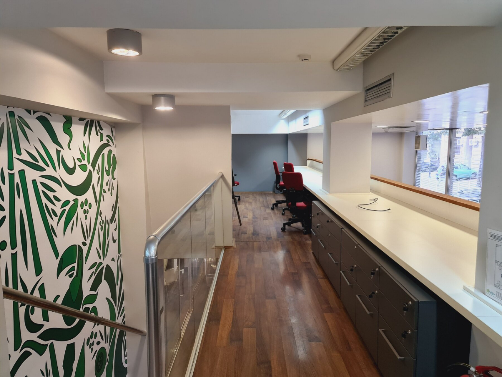 Part of the office space is located on the first floor and there is a part of the space that is downstairs with meeting room, archive/storage room and two toilets.