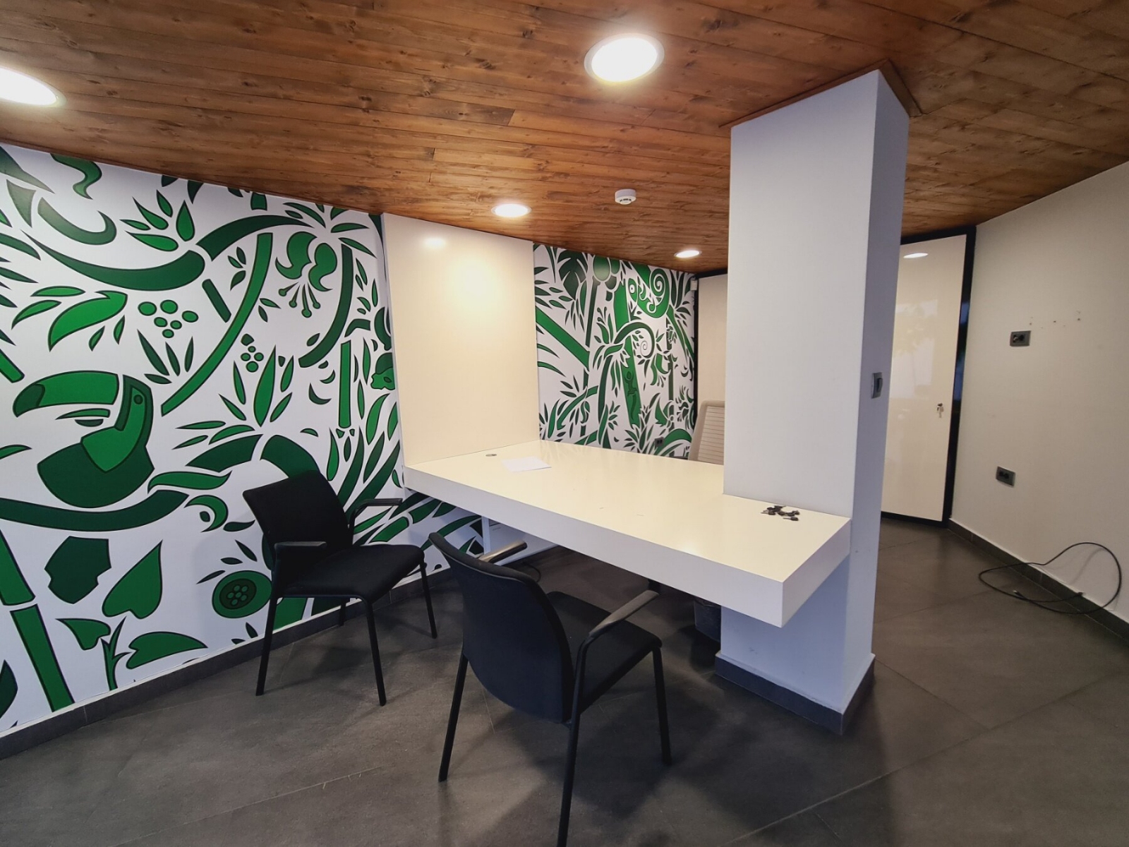 The space is fully equipped with office furniture from the brand "Steelcase", has computer connectors and has a complete installation for network connection.