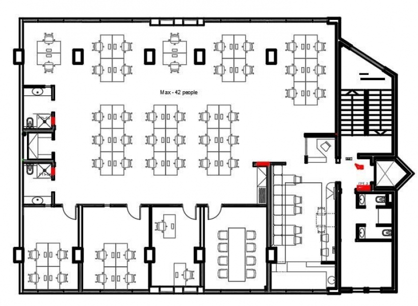 The space is currently an open space, with several separate offices, which can be rearranged according to the needs of future tenants.