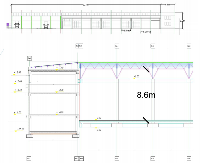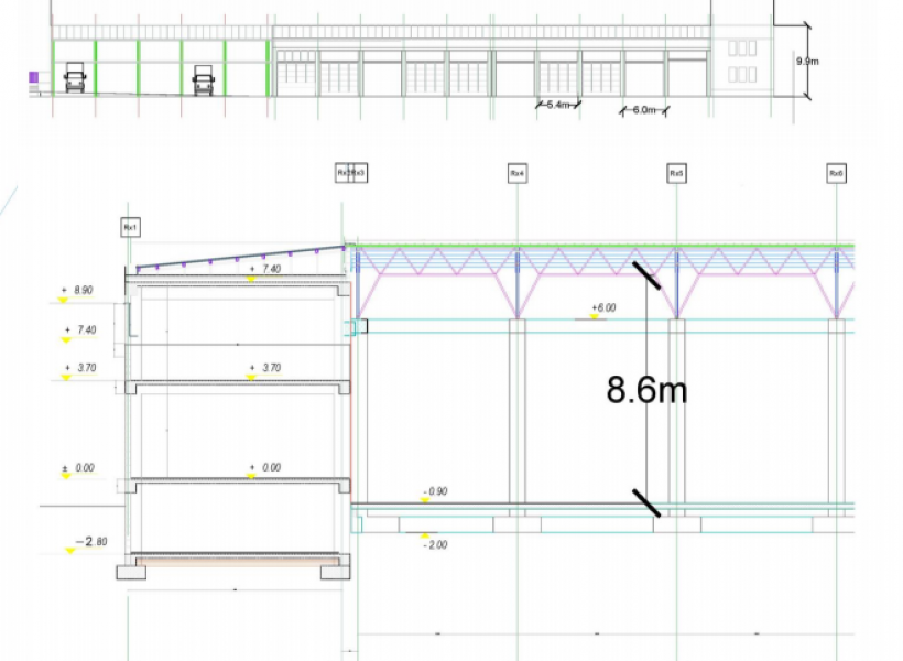 Height in the warehouse space is 6.9 m. The highest point is 9.9 m.