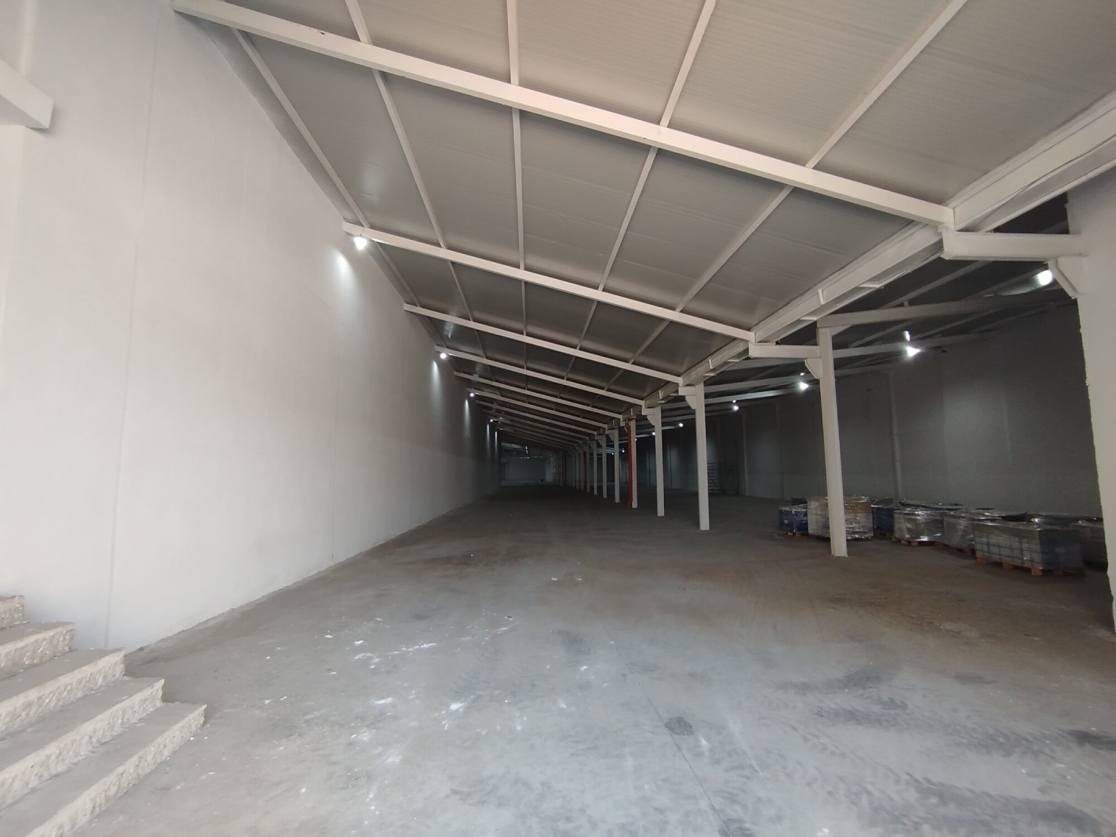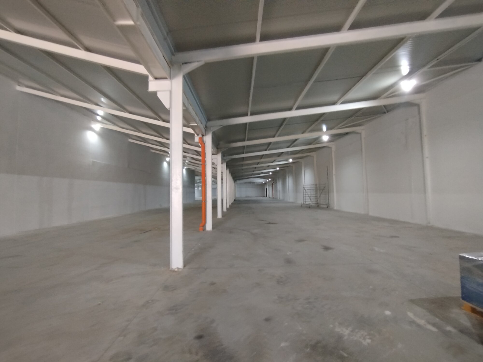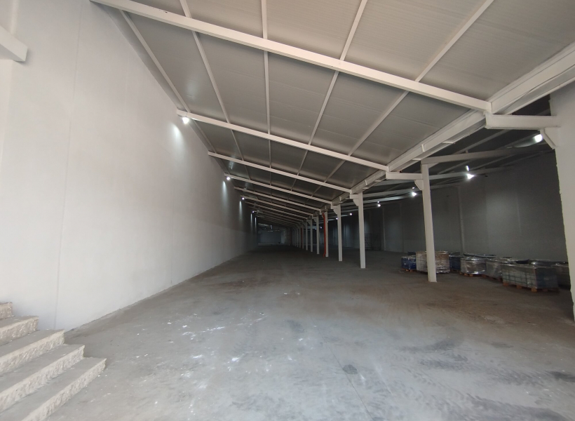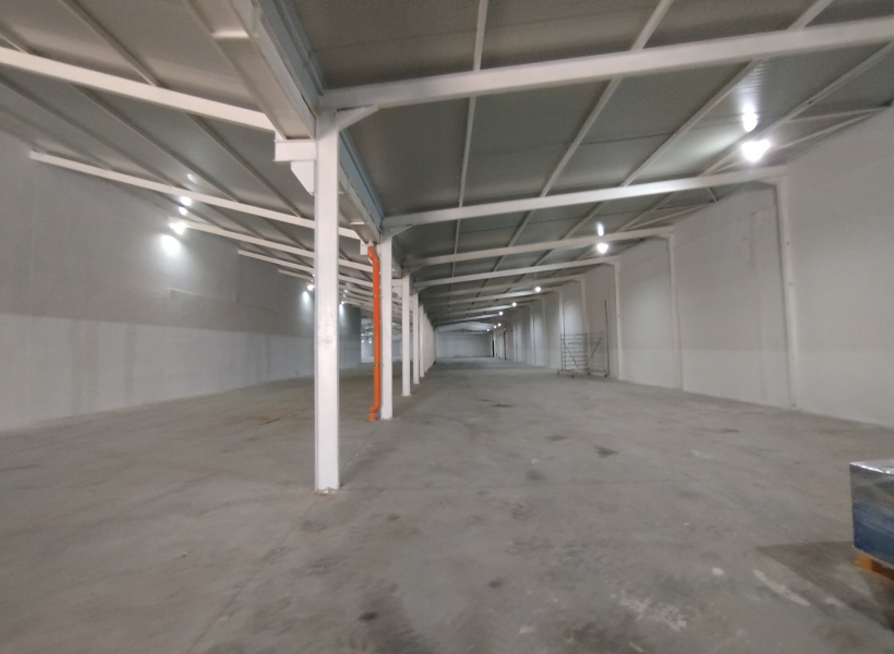 The warehouse space is consisting of one open space of 3200m2, toilets and separate office space.