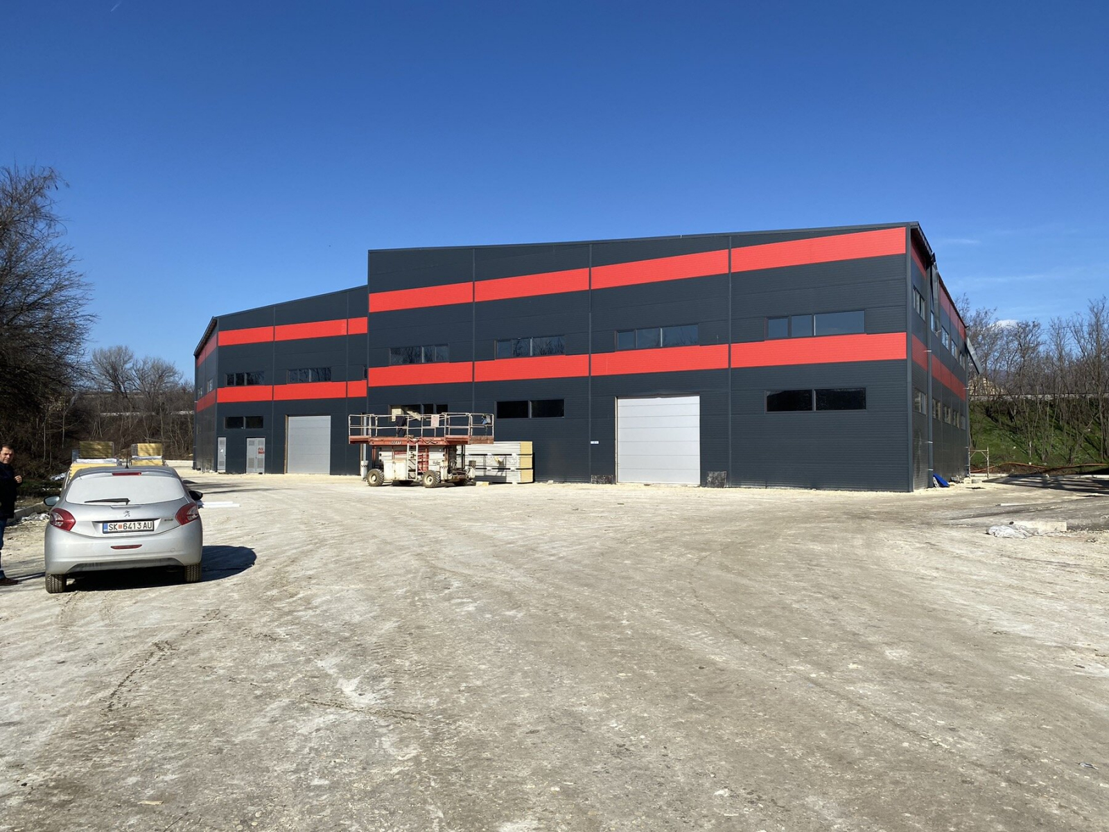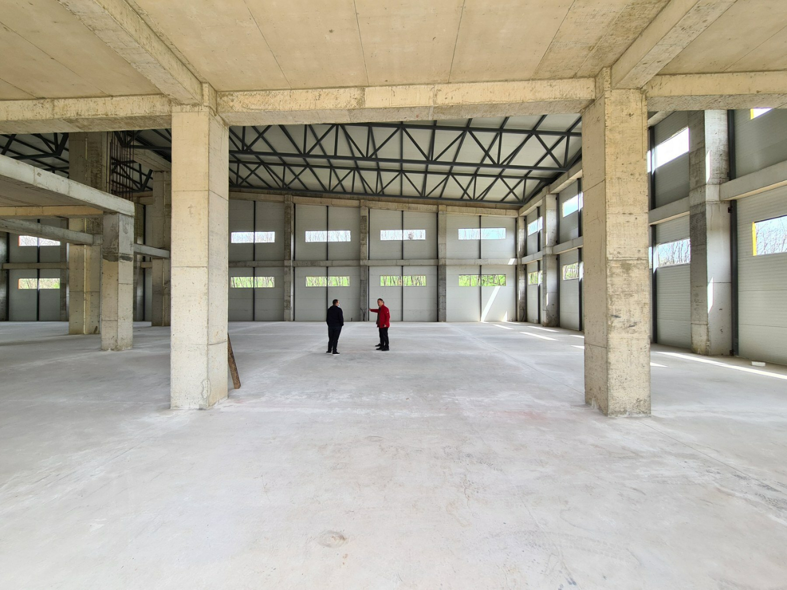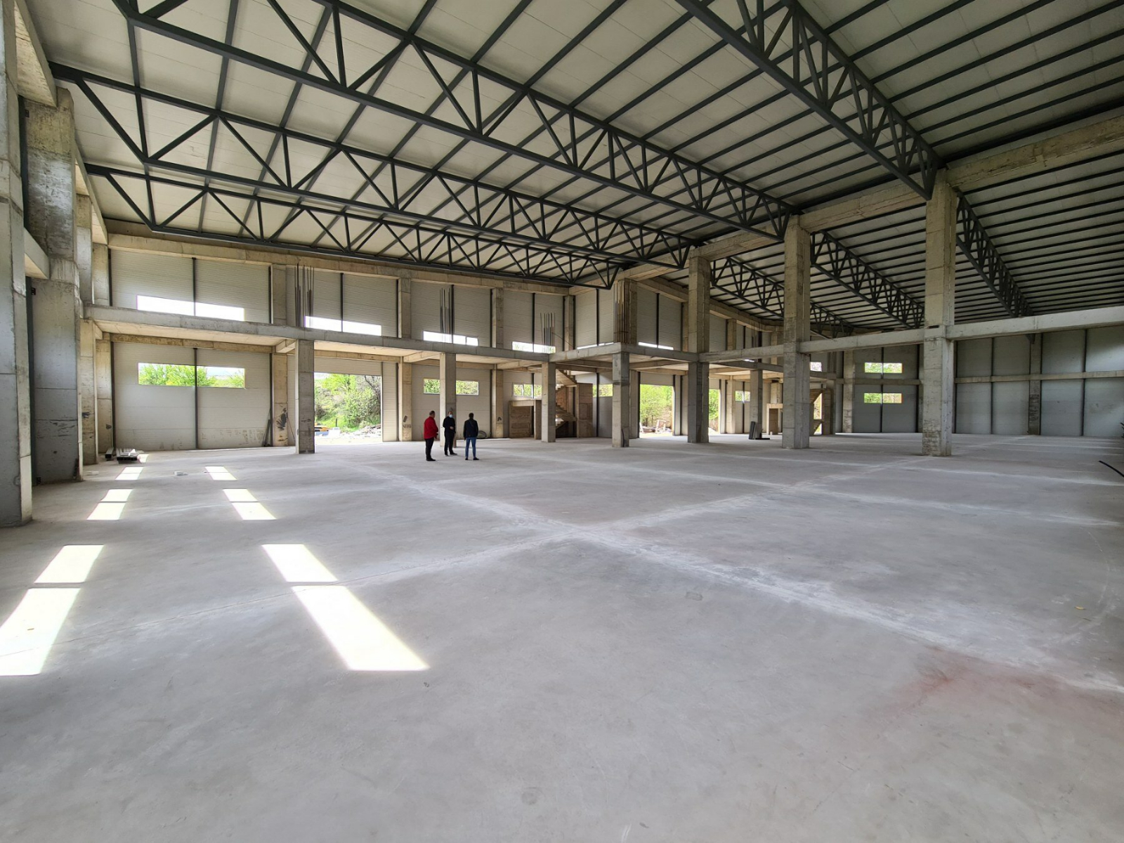 The warehouse has a total area of 1800m2, it is 10m high, and it has three separate entrances. In the warehouse there is an office part which is on a level.