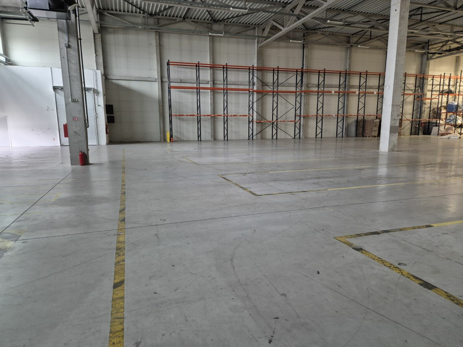 The property offers a total area of 2,500 sqm, with an open-plan layout that allows flexible organization according to the tenant’s needs. The warehouse features a high clear height, enabling efficient pallet and racking storage.