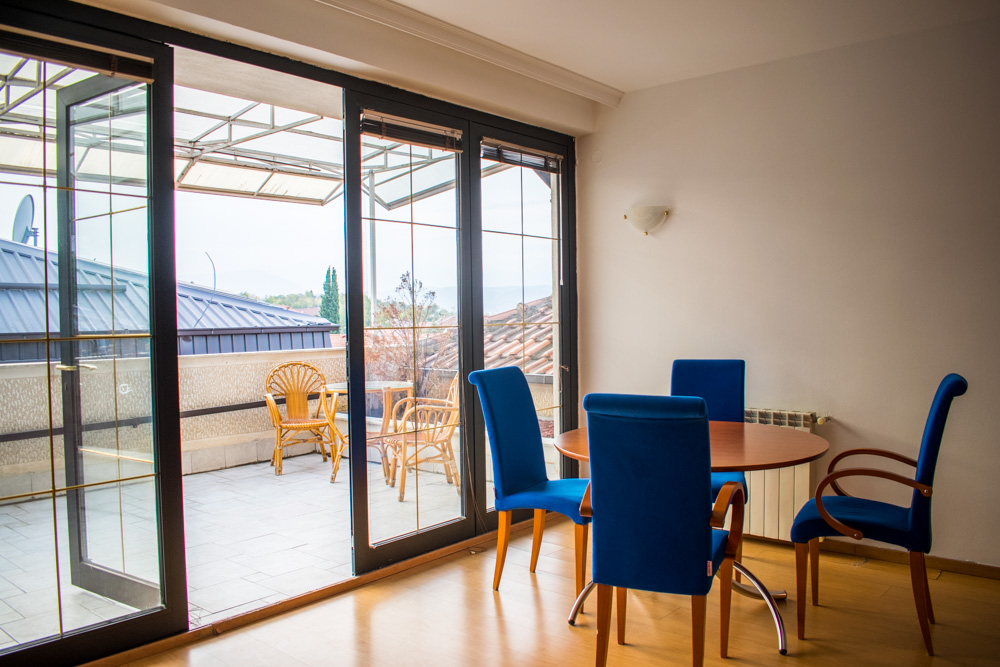Вториот кат е стан единица која може да се користи како куќа за гости со посебен влез и се состои од дневна и трпезарија, кујна, спална соба, бања и балкон со поглед на градот.