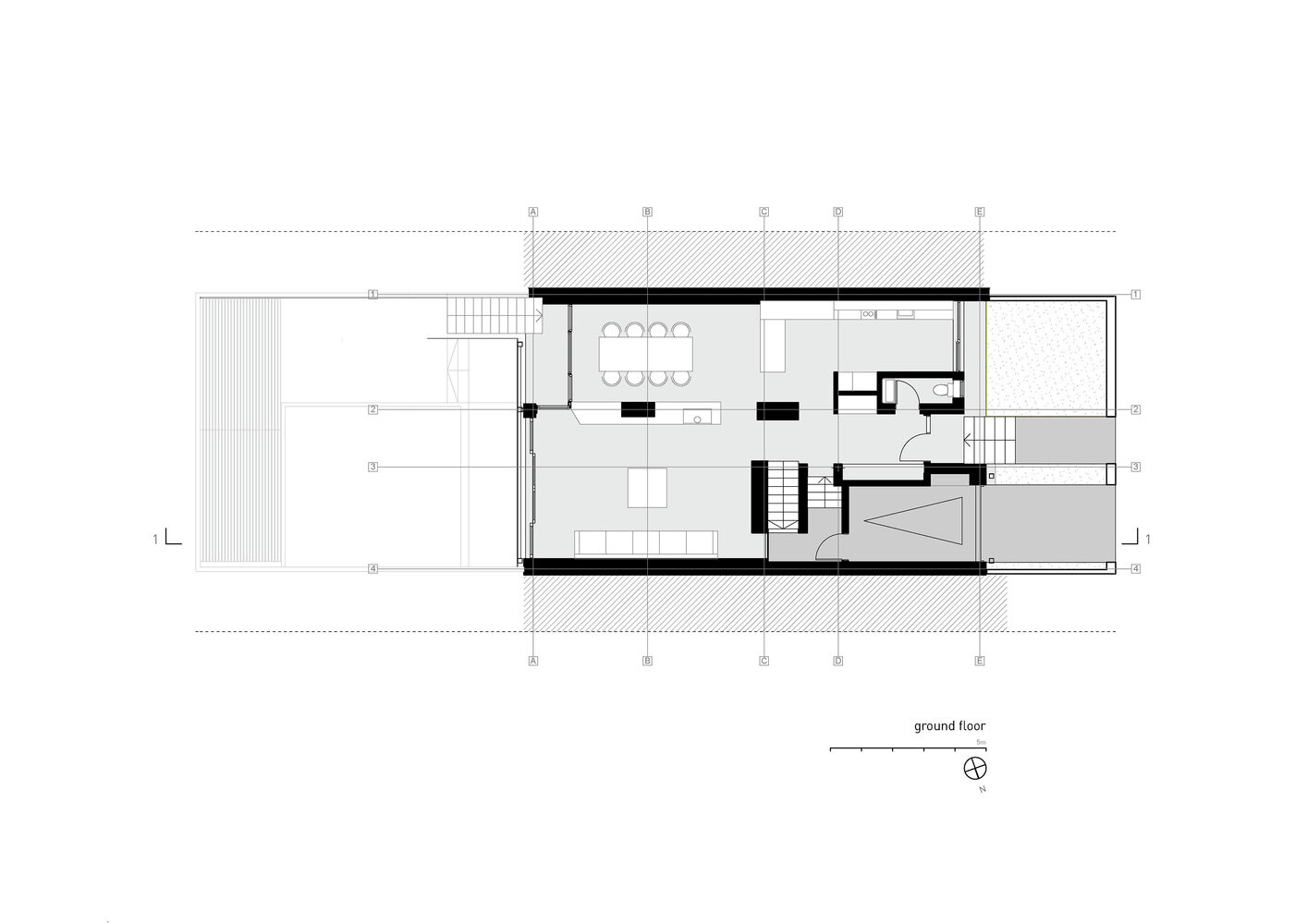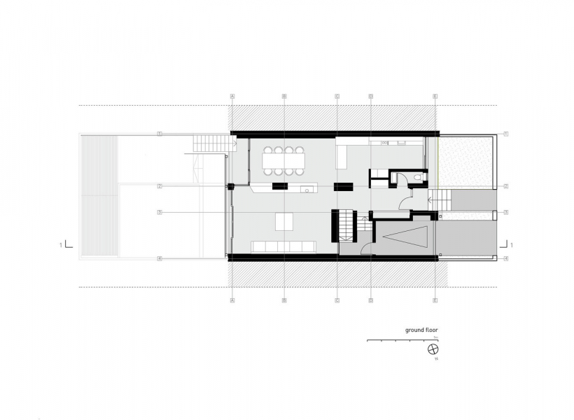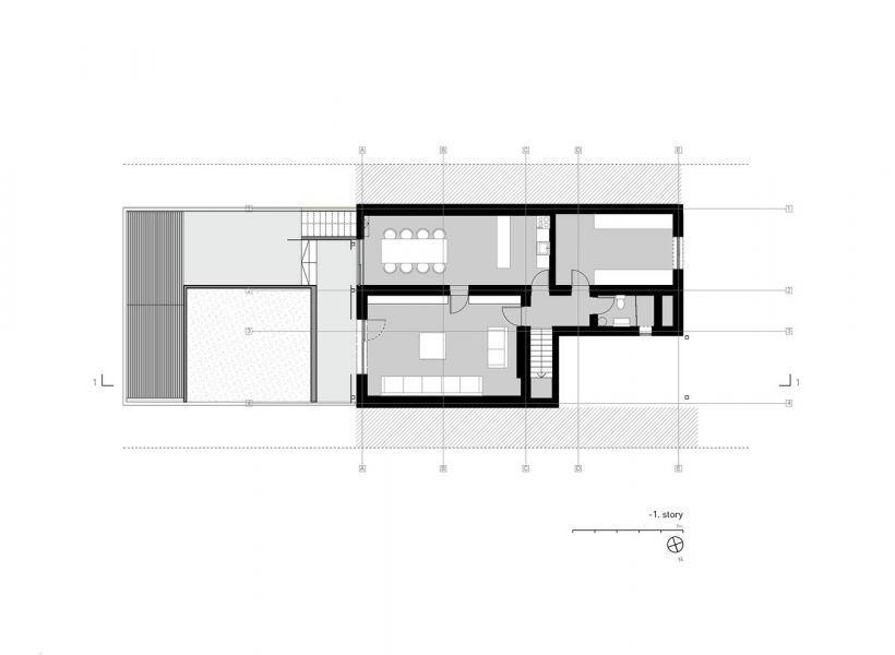 Приземје - со дневен престој, кујна и трпезарија и тоалет.