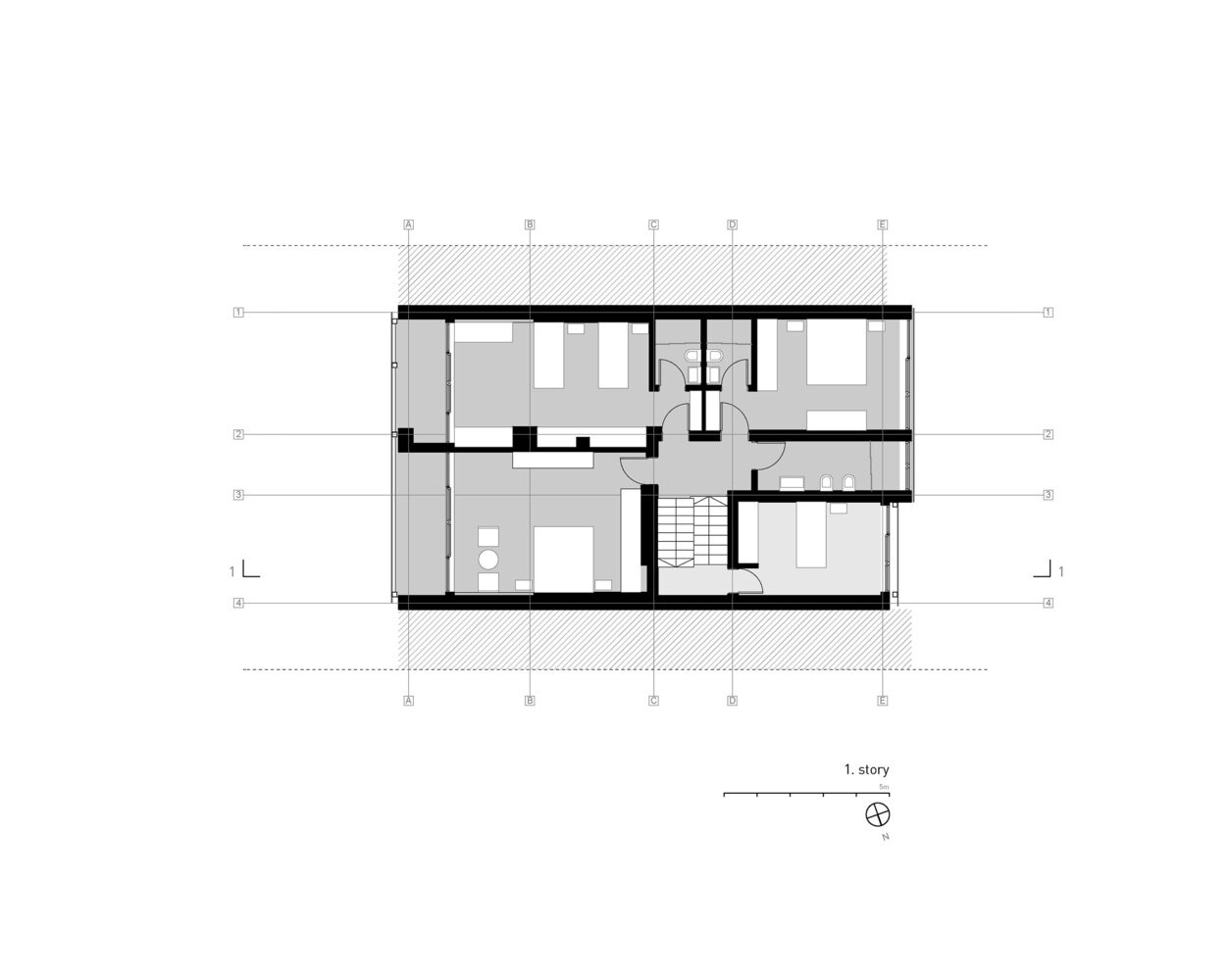 Прв кат- со четири спални соби (од кои две имаат сопствена бања) и дополнително уште една бања.