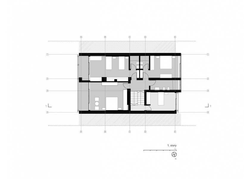 Куќата располага со подрум, приземје, прв кат и поткровје.