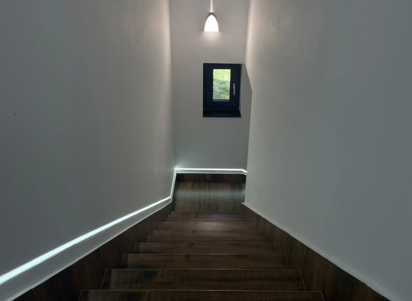 Куќата е на два ката со посебни влезови, што овозможува функционалност и приватност.