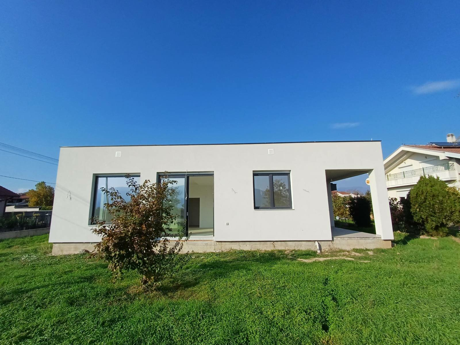 Изградбата на куќата е започната пред една година и е на едно ниво.