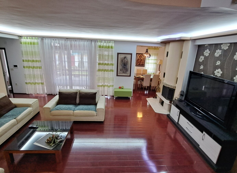 Греењето и ладењето во куќата е регулирано преку клима уреди и камин.