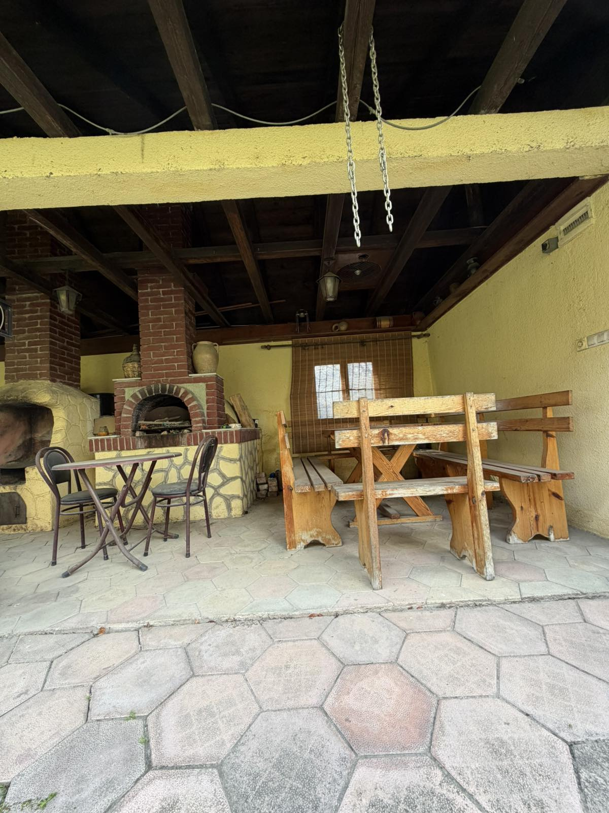 Куќа е лоцирана во Визбегово на со вкупна корисна површина од 276 м², функционално распоредена на 3 нивоа. Објектот располага со 6 спални соби, 3 дневни престои, 3 кујни и 3 тоалети, што овозможува удобен простор за поголемо семејство или повеќенаменско користење. Куќата се наоѓа на парцела со вкупна површина од 504 м², од кои 389 м² се дворно место, а 115 м² земјиште под објект. Дворот е уреден и содржи летниковец со скара и фурна, декоративна фонтана и ограден простор со кована ограда. Објектот е изведен со пикована фасада и располага со систем за парно греење на струја и нафта, како и 3 клима уреди поставени на секој кат.