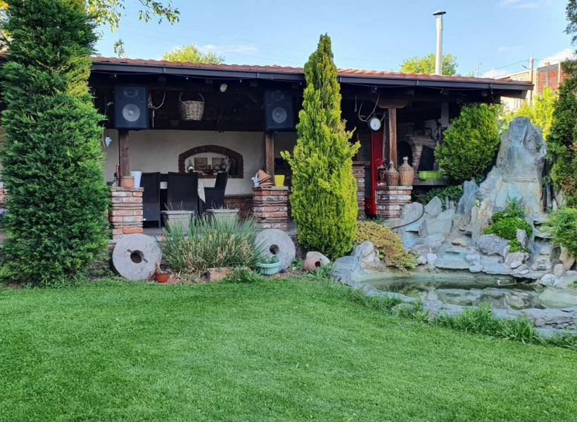 Kуќа со простран хортикултурно уреден двор од 1000м2, е мирен рај, кој нуди можност да избегате од вревата на светот и да уживате во природната убавина што ве опкружува.