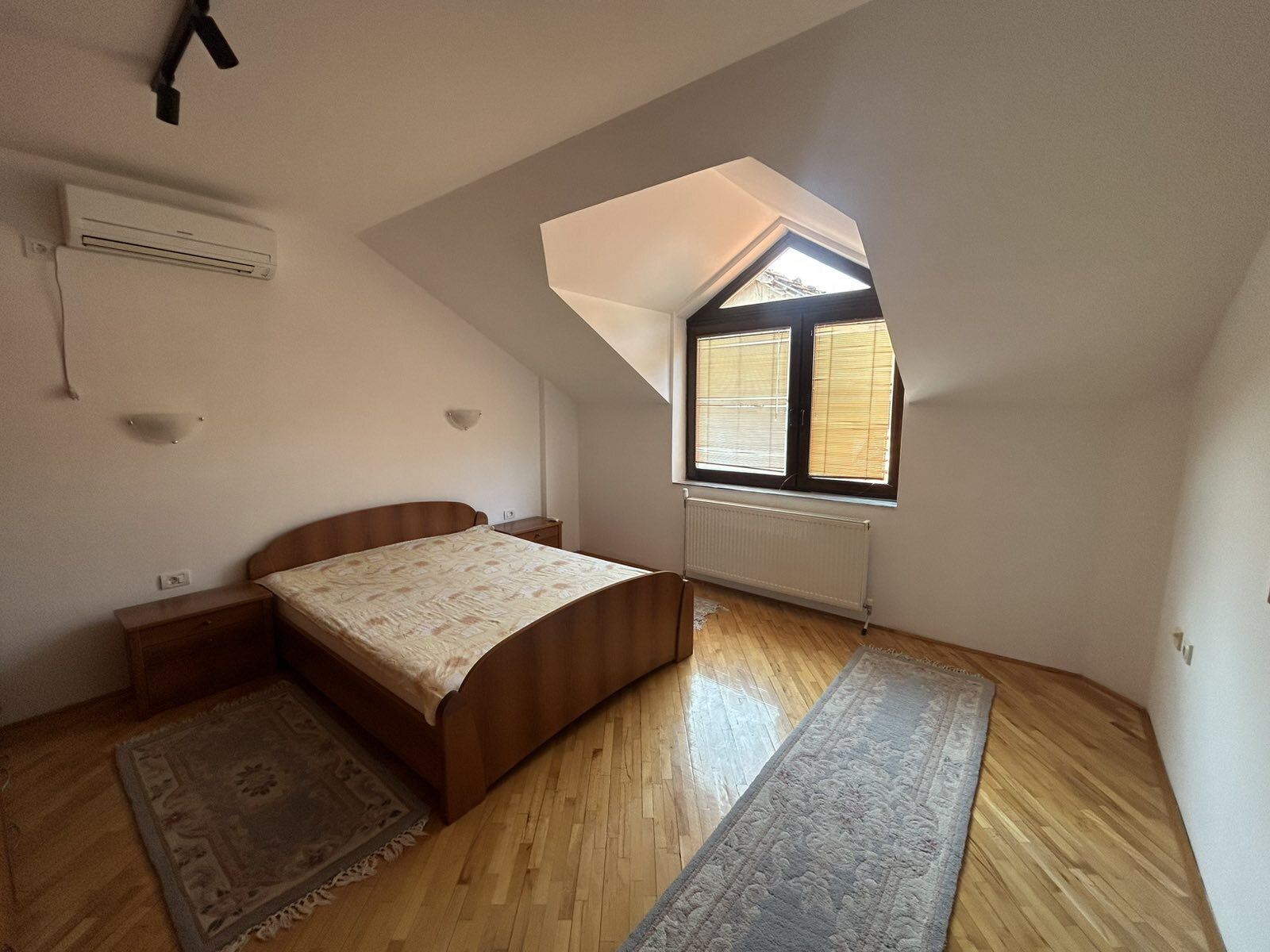 Оваа комфорна семејна куќа е распоредена на две нивоа, поткровје и подрум, со дополнителна гостинска куќа во дворот.