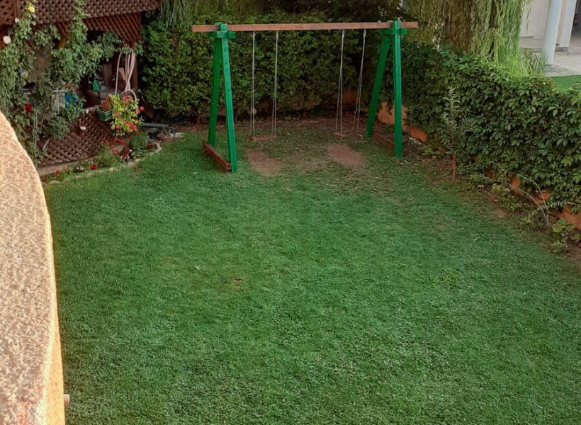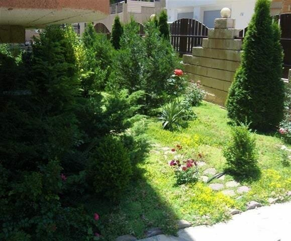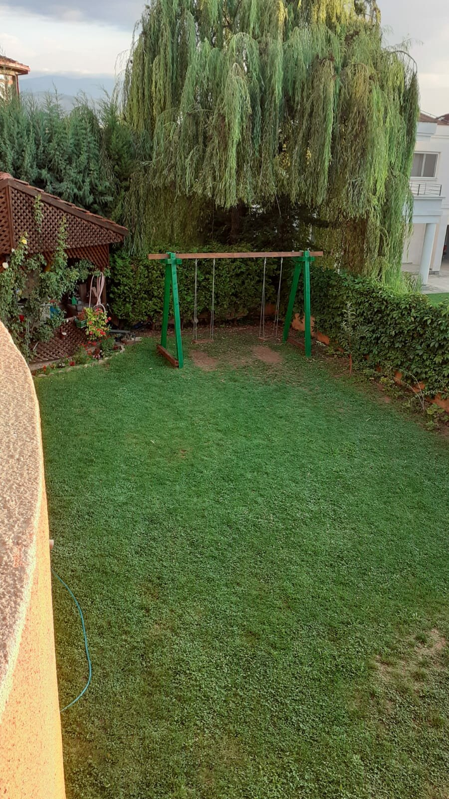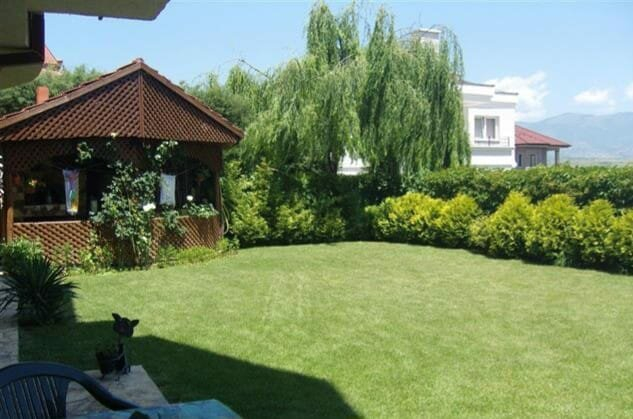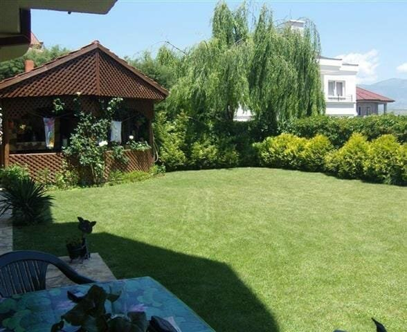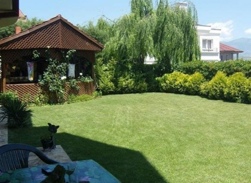 Дворот е ограден и осветлен, идеален за семејни активности.