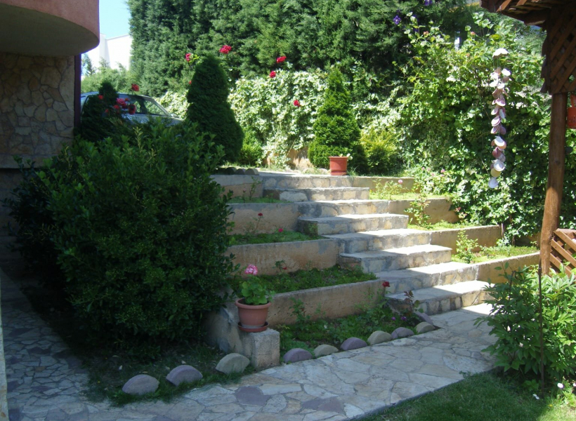 Дворот има површина од 500м² и е распоредено на две нивоа.