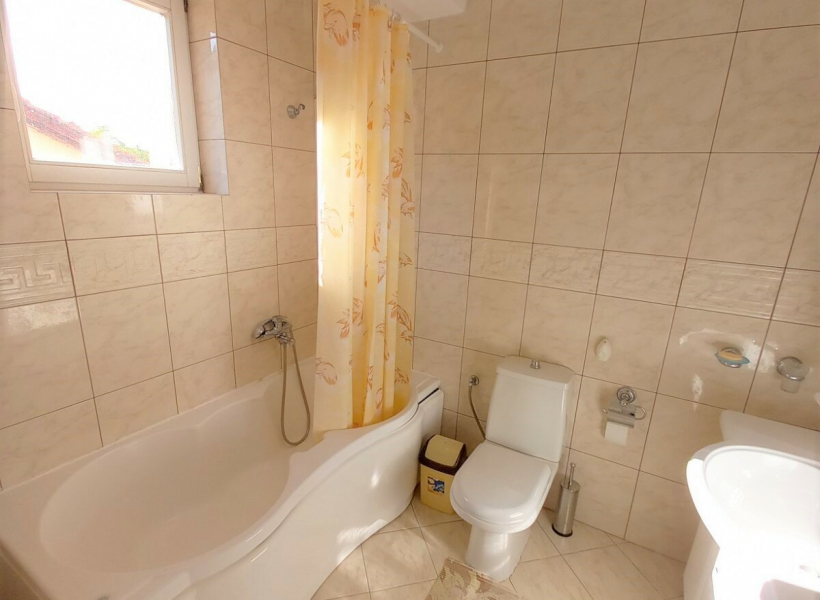 Целата куќа располага со: дневна соба, кујна со трпезарија, 3 спални соби, помошни простории, 3 тоалети, 1 летна кујна и гаража.