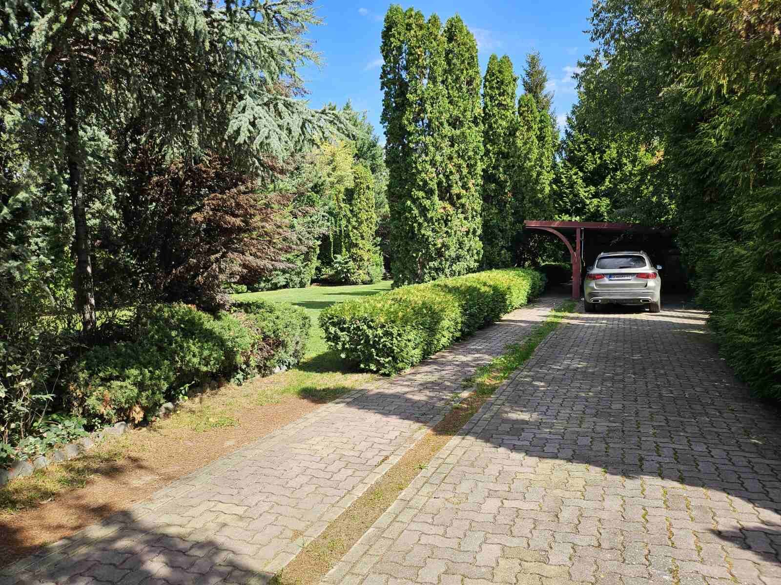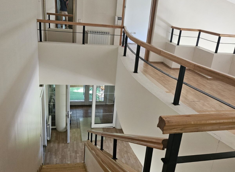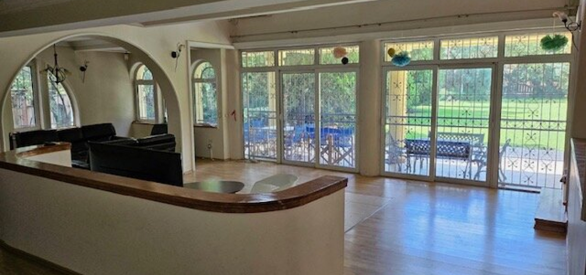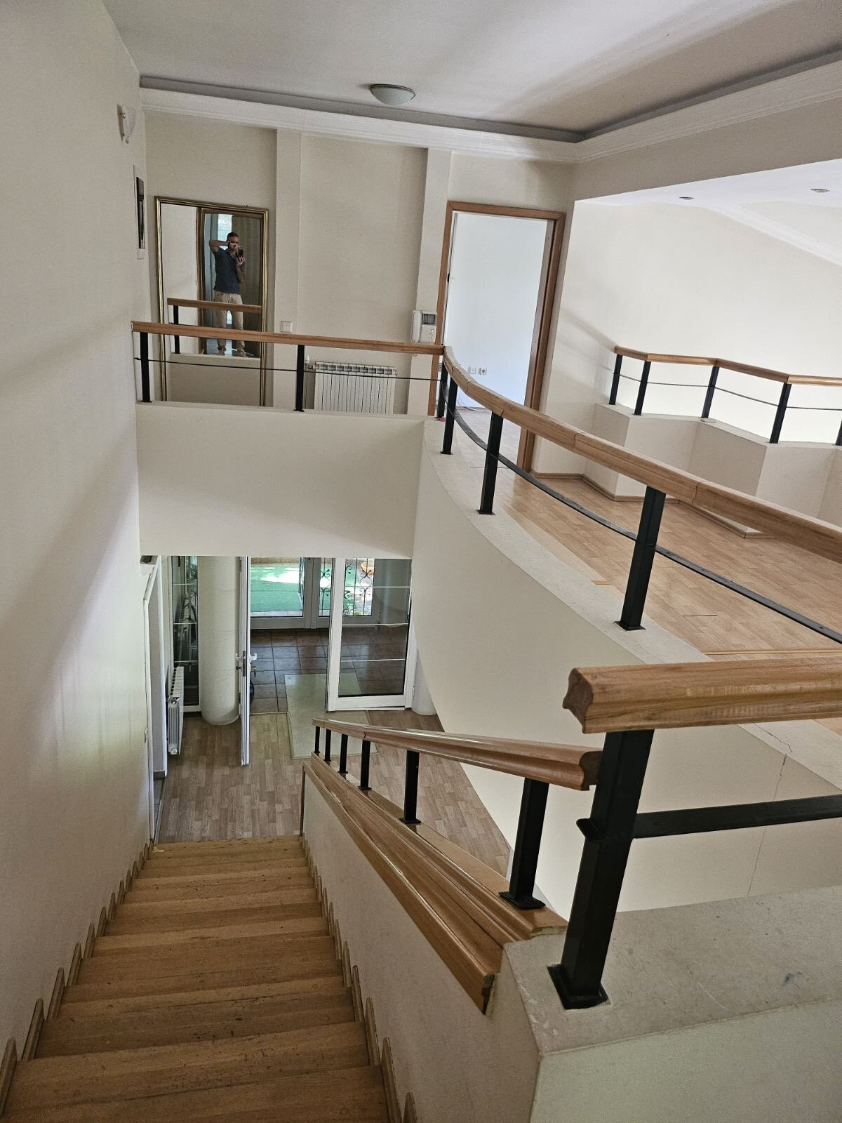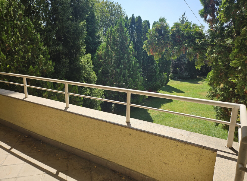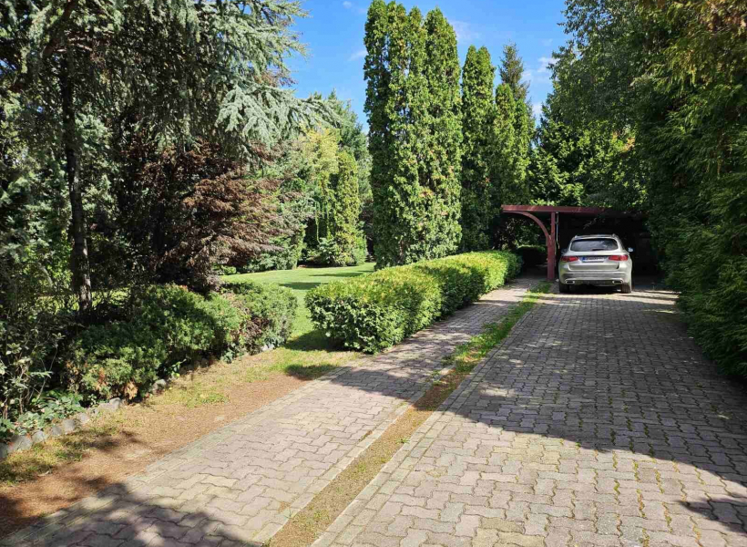 Внатрешната површина е 350м2. Плацот е 1800м2. Куќата е опкружена со големи дрвја и зеленило, што го прави дворот интимен и погоден за деца.