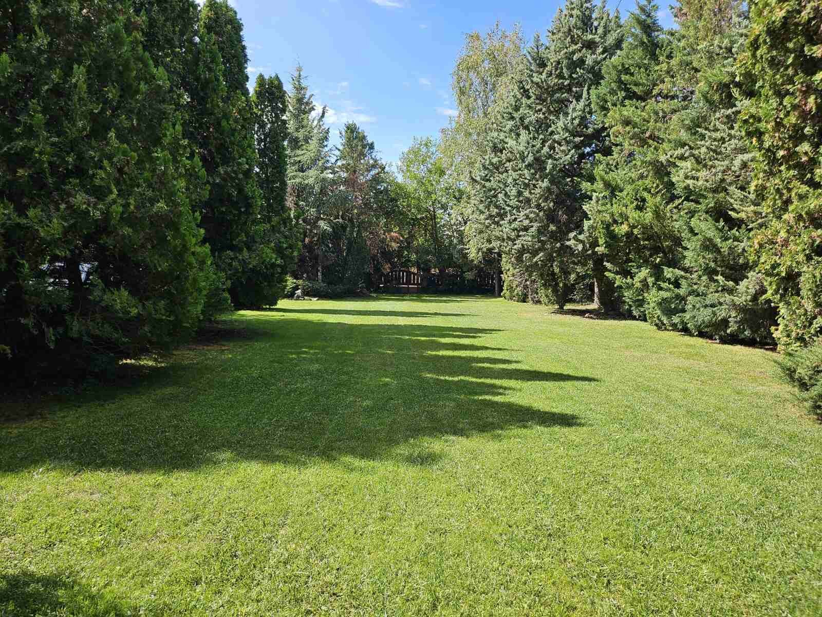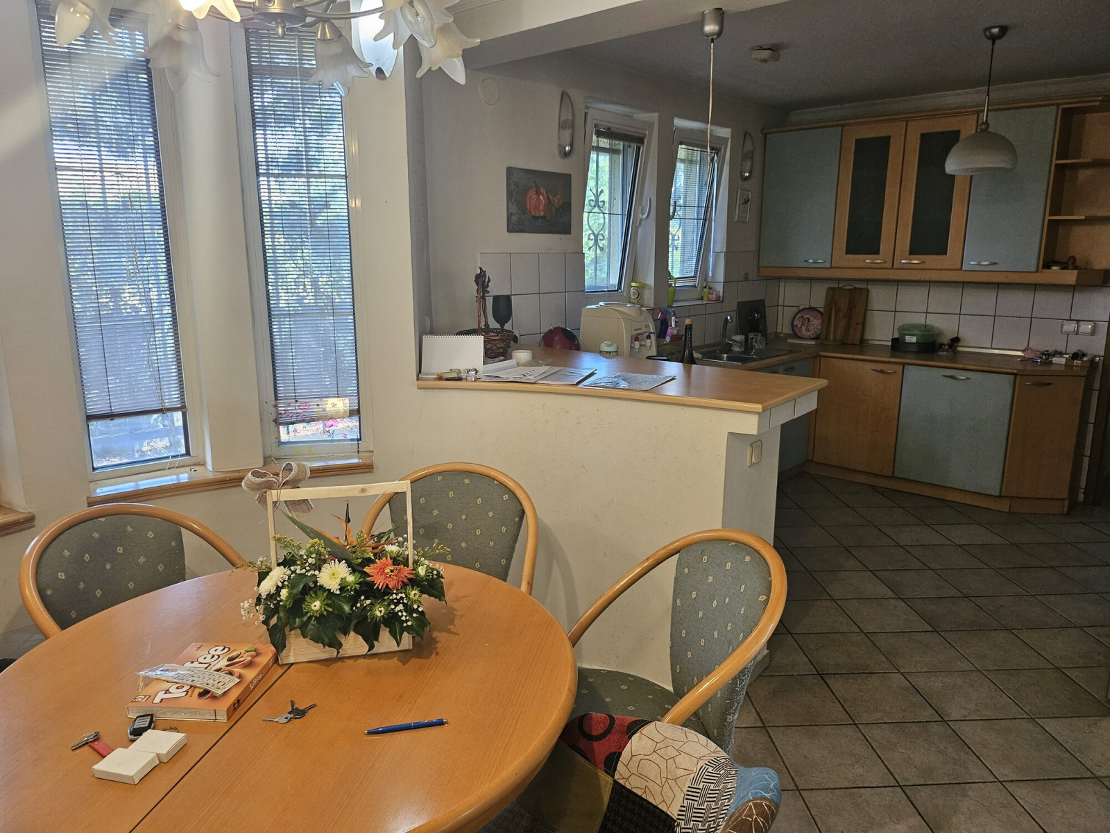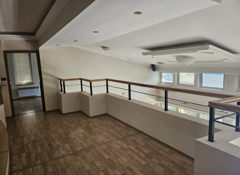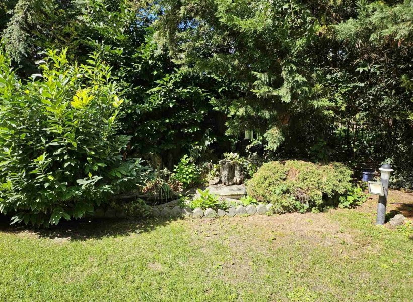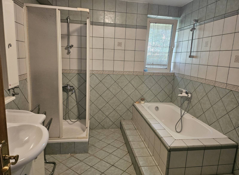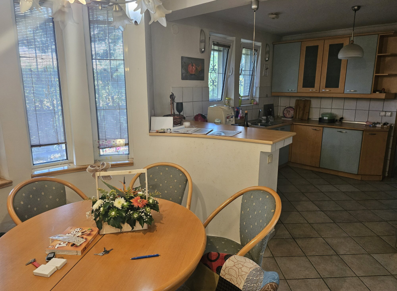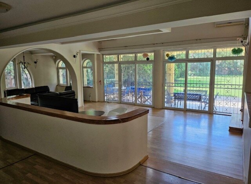 Внатрешната површина е 350м2. Плацот е 1800м2. Куќата е опкружена со големи дрвја и зеленило, што го прави дворот интимен и погоден за деца.